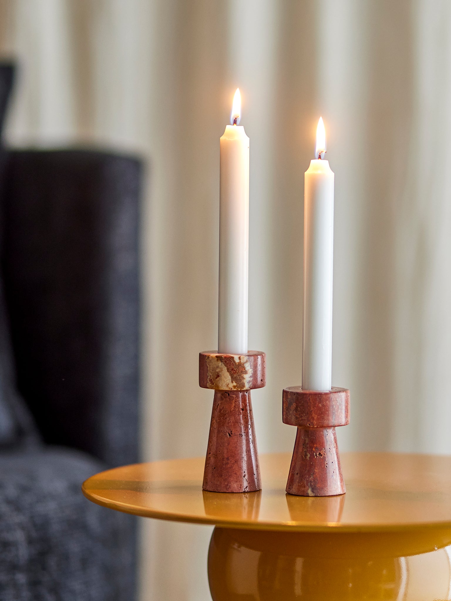 Anneli Candle Holder, Rose, Travertine