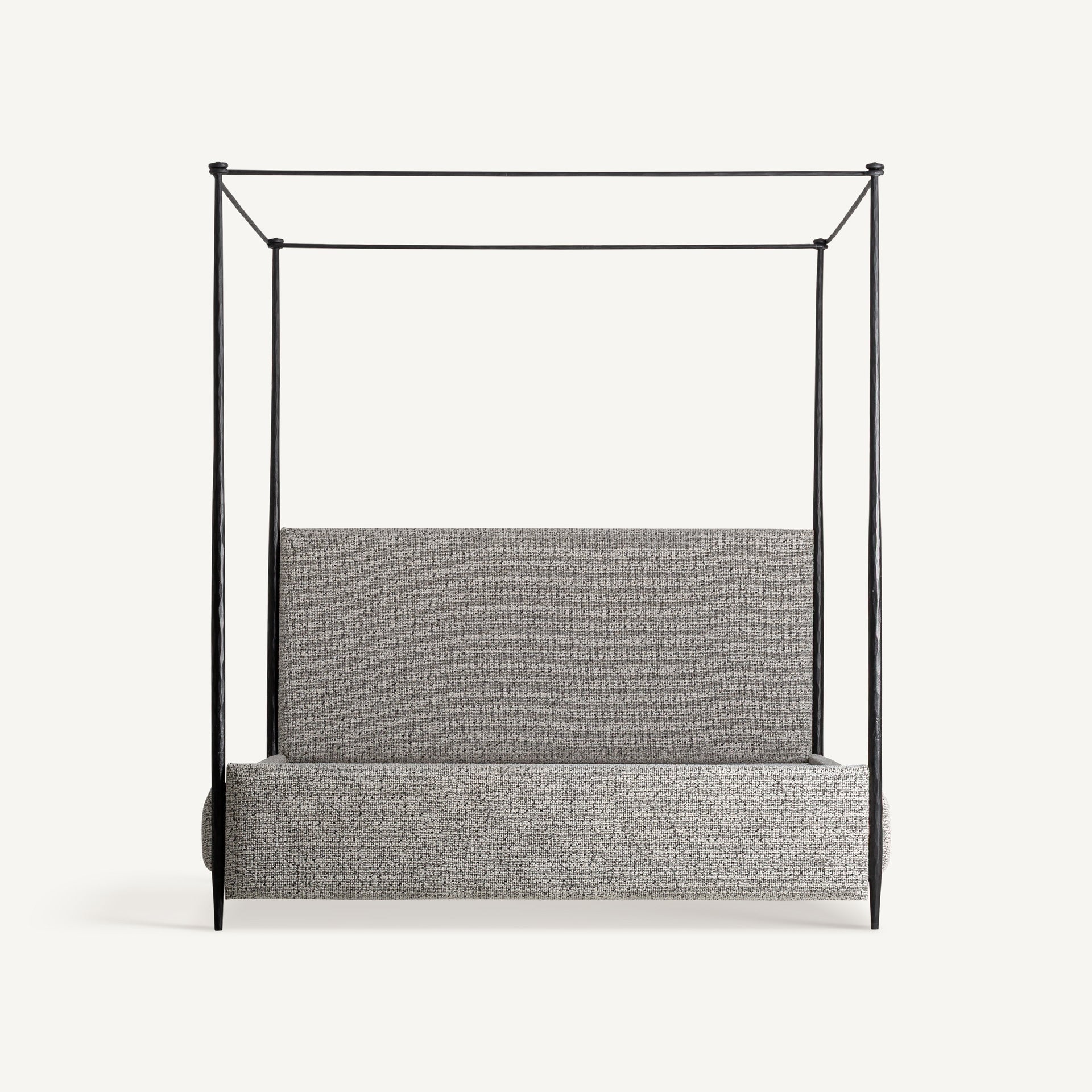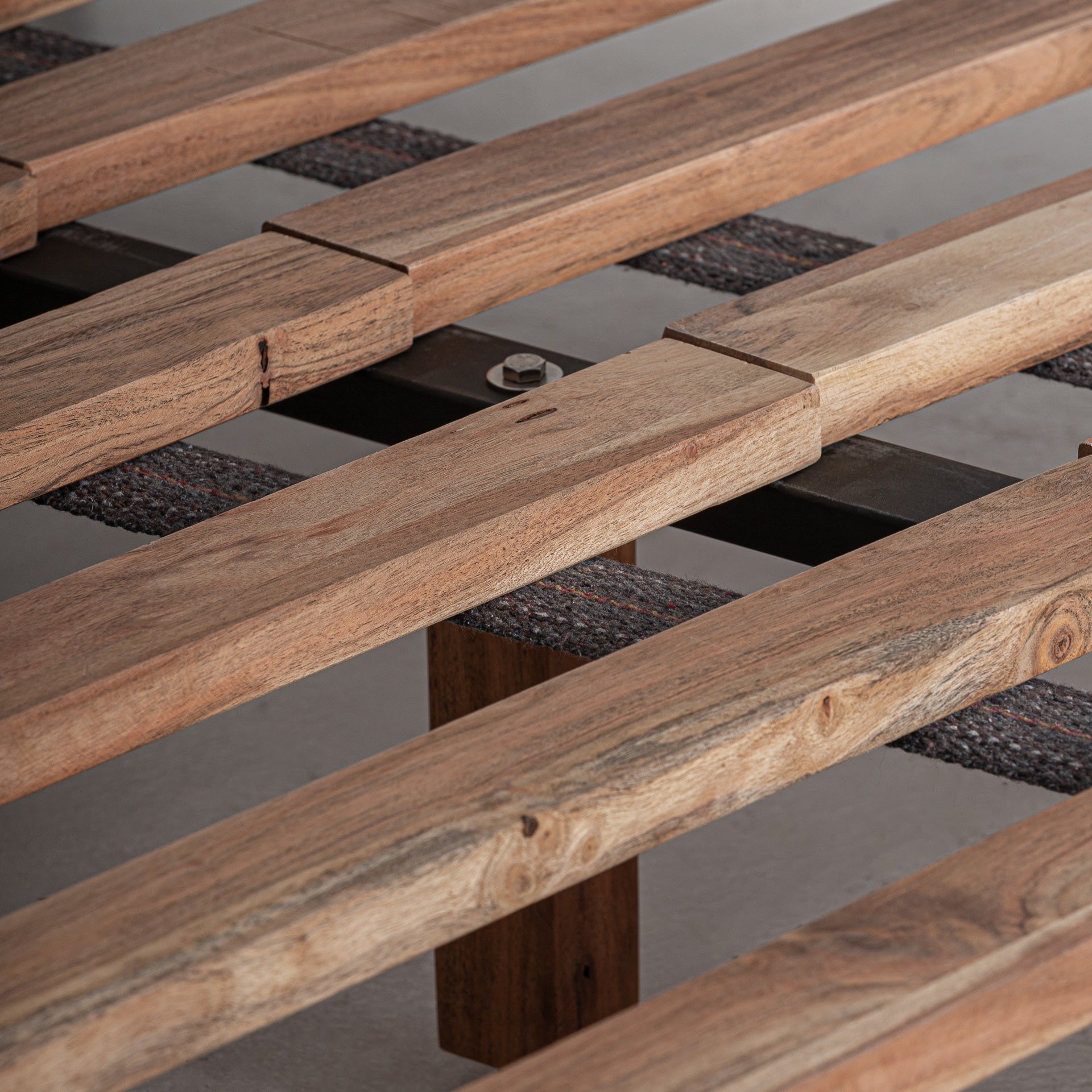 Legs dimensions: 3X3X8,5 cm. Space between legs: 182X202 cm. Type of legs: Regulable Head measurement: 180X8X80 cm. From the floor to the top of the bed: 41 cm. The mattress is inserted: 180X203X19 cm into the frame Detachable parts: structure Supported Weight: 360 kg. Recommended size bed: 180 cm. Included: iron fittings, bedstead.