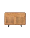 A beautiful sideboard with a rustic style and smooth finishes, handcrafted in natural recycled teak wood, rope and iron. The whole structure of the sideboard, including the two upper drawers, is made of recycled teak wood, except for the original iron legs. The rope lined doors accentuate that point of soft contrast that we like so much. It belongs to the CORA collection, which stands out for its characteristic braiding, handmade by our expert craftsmen. The ecological paper rope fabric, together with the iron legs and the natural recycled teak structure recovered from old disused buildings in Java, make the CORA pieces a perfect ally for those who love sustainable design. An ideal sideboard for charming hallways, corridors, bathrooms or bedrooms.
