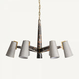 Ceiling lamp, made of marble in beige, combined with golden metal and off white polyester.