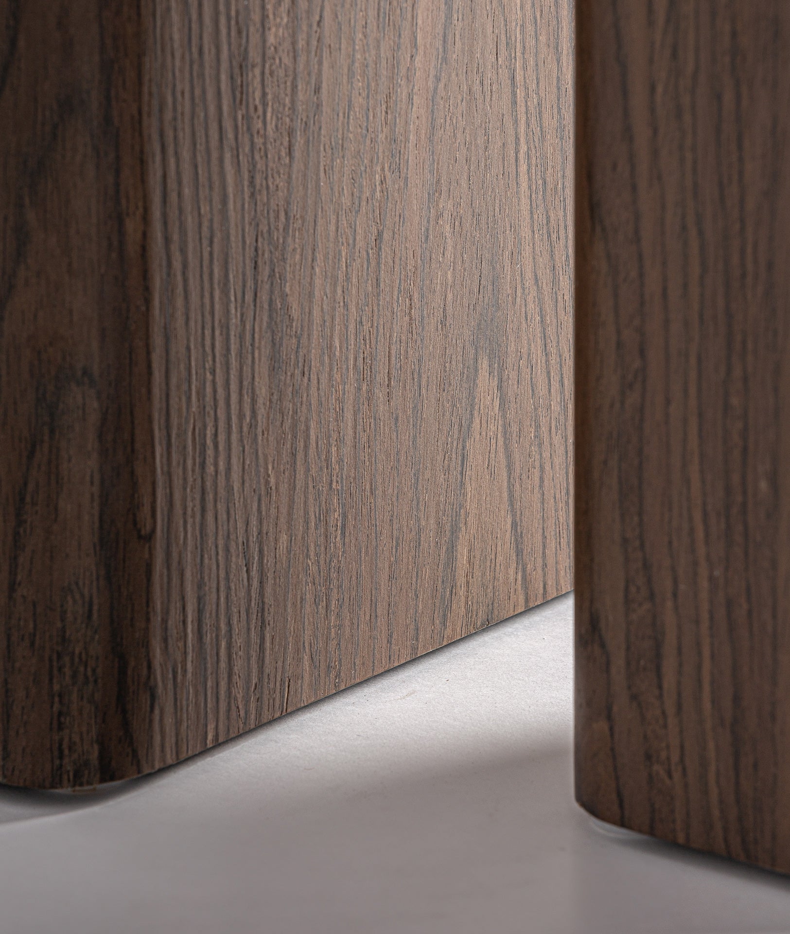 The Atlas side table combines dark marble and wood, a distinctive piece that brings sophistication to high-end contract spaces.