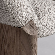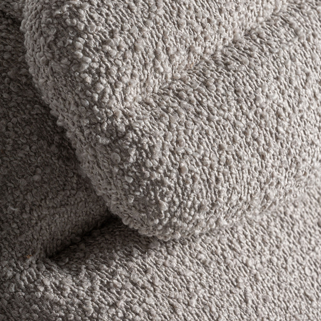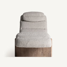 Jacquard chaise longue designed by estudi{H}ac. Made of brown oak wood with beige upholstery, it offers a fluid, ergonomic silhouette that invites stylish relaxation.