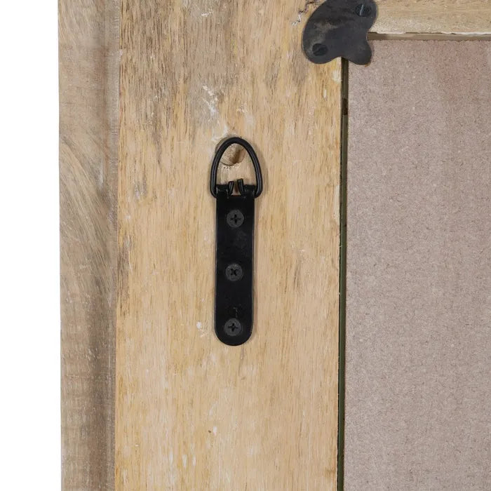 MANGO WOOD. Back material: DM. Interior measurements: 44.5X76.2cm. Vertical placement. Ring incorporated into the frame for correct fastening.