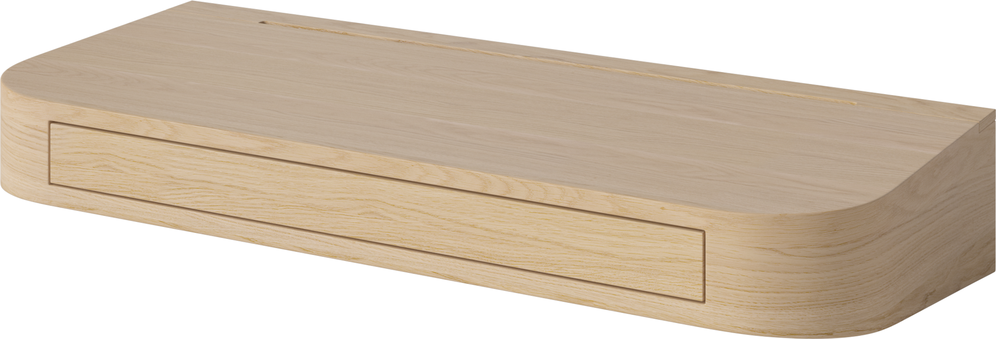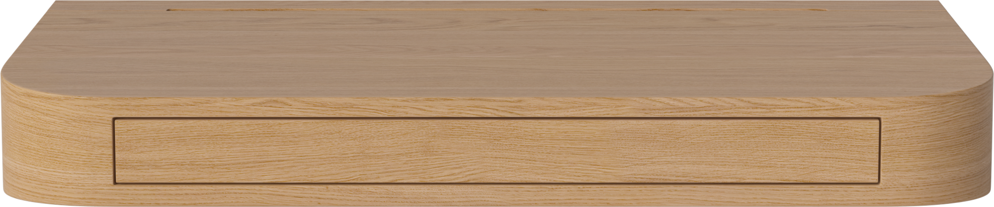 Vala is a luxurious piece of furniture, designed with a perfectly finished form and cleverly hidden functions like storage and cable management. Three cable outlets underneath and a spacious drawer for your laptop, keys, notebook or jewellery – depending on setting – lets you easily organize and simplify your workstation. The desk is mounted flush to the wall with a concealed suspension, creating a simple and minimalist expression with beautifully handcrafted details in oak veneer.