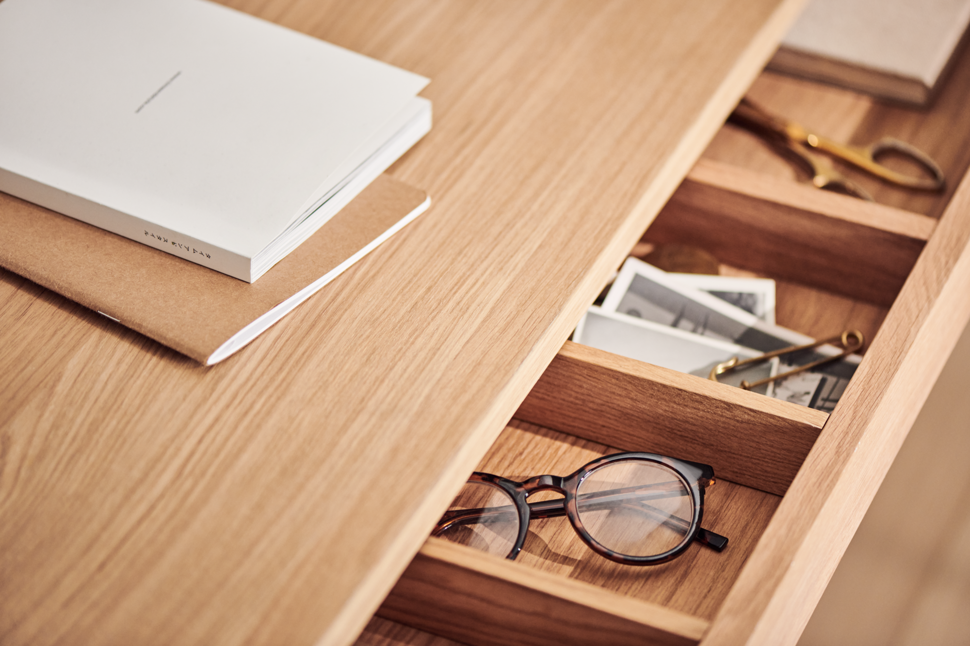 Luxurious and compact desk handcrafted in oak veneer
