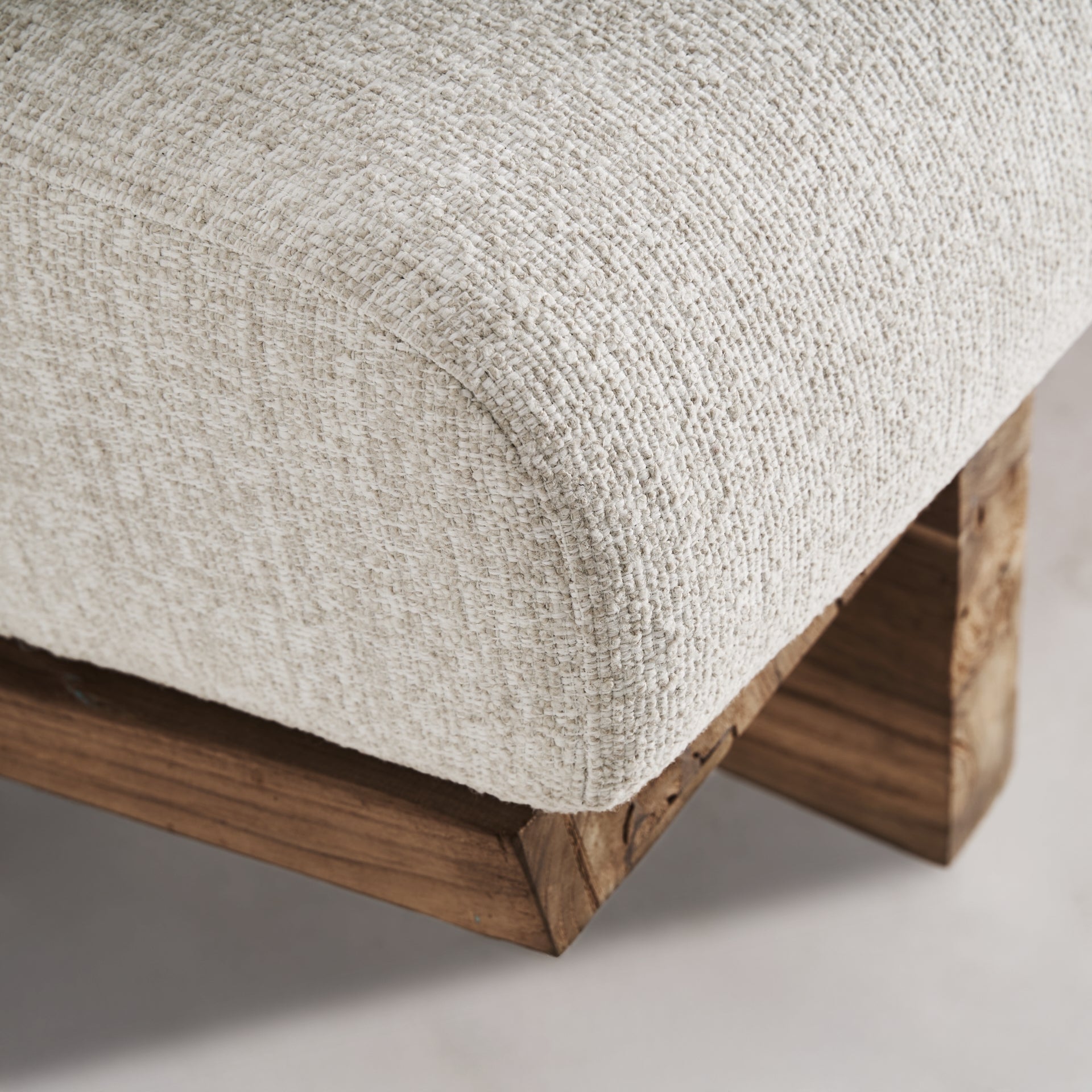 The perfect balance between clean design and comfort. The Pure sofa, made from cream-colored recycled teak and upholstered with recycled polypropylene, is ideal for relaxed, modern spaces. Removable and demountable, it’s a tribute to responsible functionality.