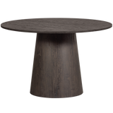 A unique and robust design: that's what you bring into your home with this Oona dining table. The round dining table comes from the Exclusive collection of Dutch interior design brand WOOOD. With a generous tabletop of 120 cm, Oona offers space for 4 people. The table is made of MDF, with a tabletop finished with 3D paper. The dark brown finish with clear wood grains gives the dining table a warm appearance and fits well in a botanical, retro or boho interior.