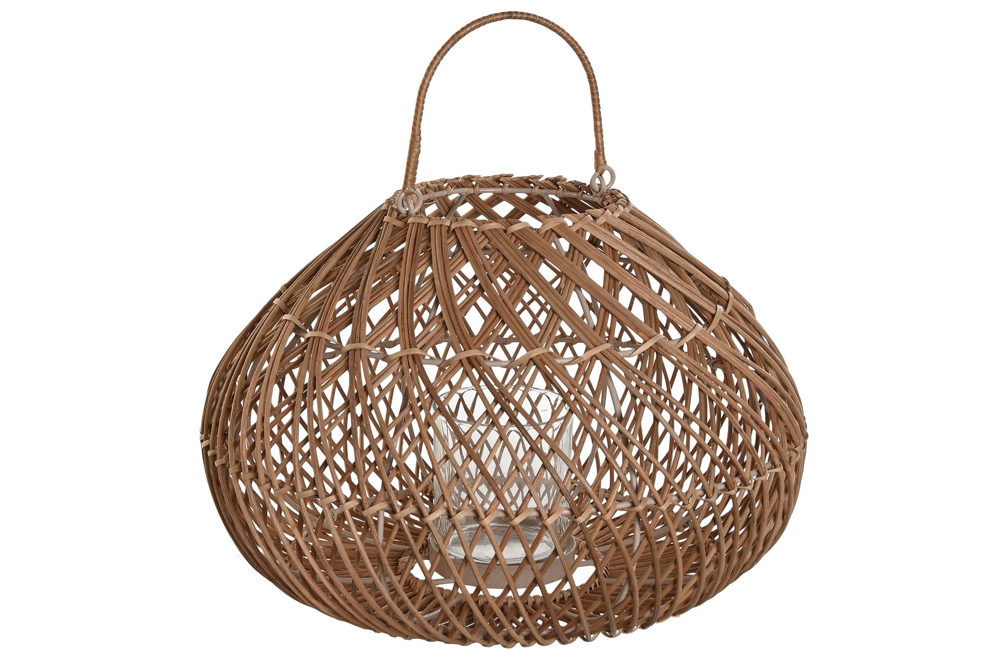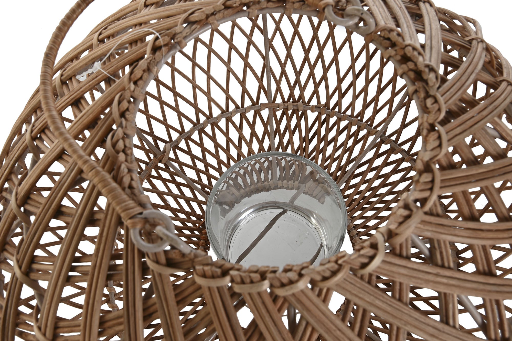 CANDLE HOLDER RATTAN GLASS 37X37X37 NATURAL BROWN