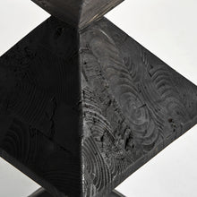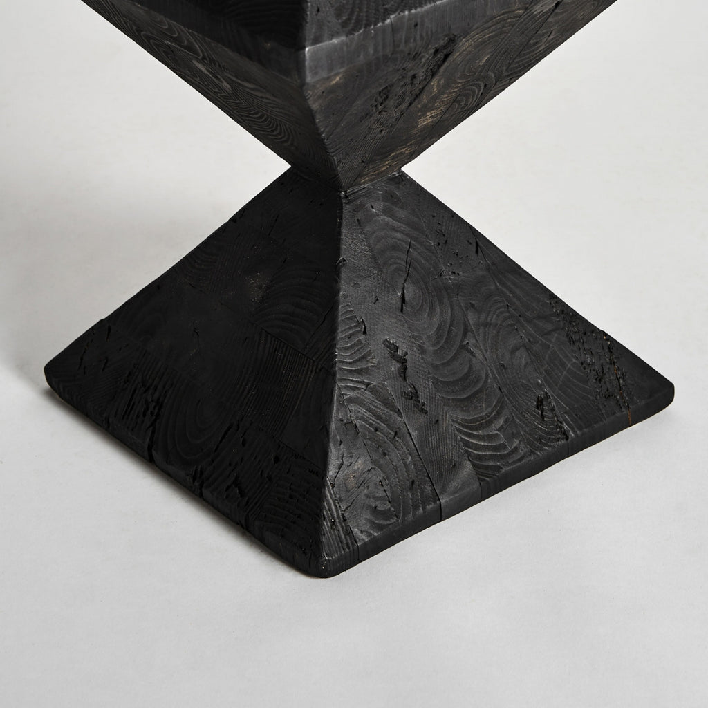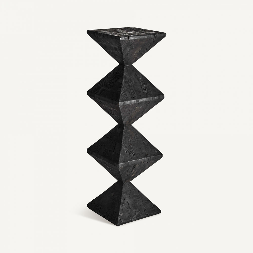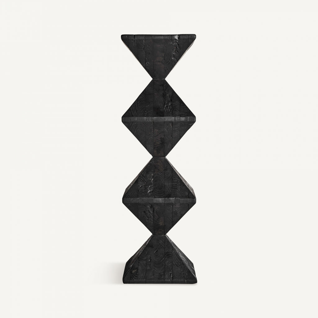Pedestal vievy, style art deco, made of recycled pine wood in black.