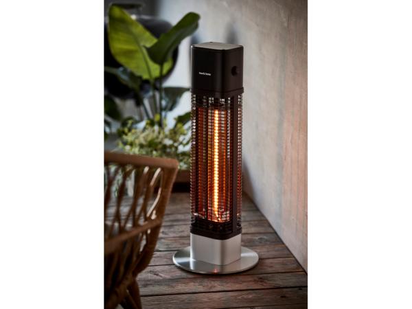 Elegant floor model patio heater that stands stable on stainless steel feet. Can be placed anywhere and is easy to move around. Simple on/off function and 1.75 metre cord. 1200 watts.Patio heater 1200 watt Black/Silver