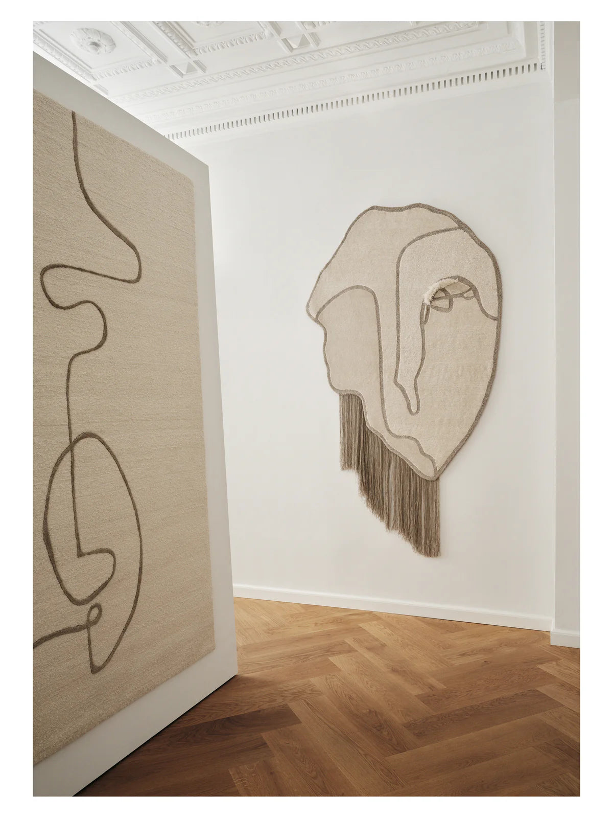 Duo Self uses an elegant, hand-drawn line in linen to define abstract facial features in this stunning woven narrative. Handcrafted in New Zealand wool with silk, linen and mohair for extra textural dimension, Duo Self’s strong yet calm expression brings modern sophistication to any floor space.