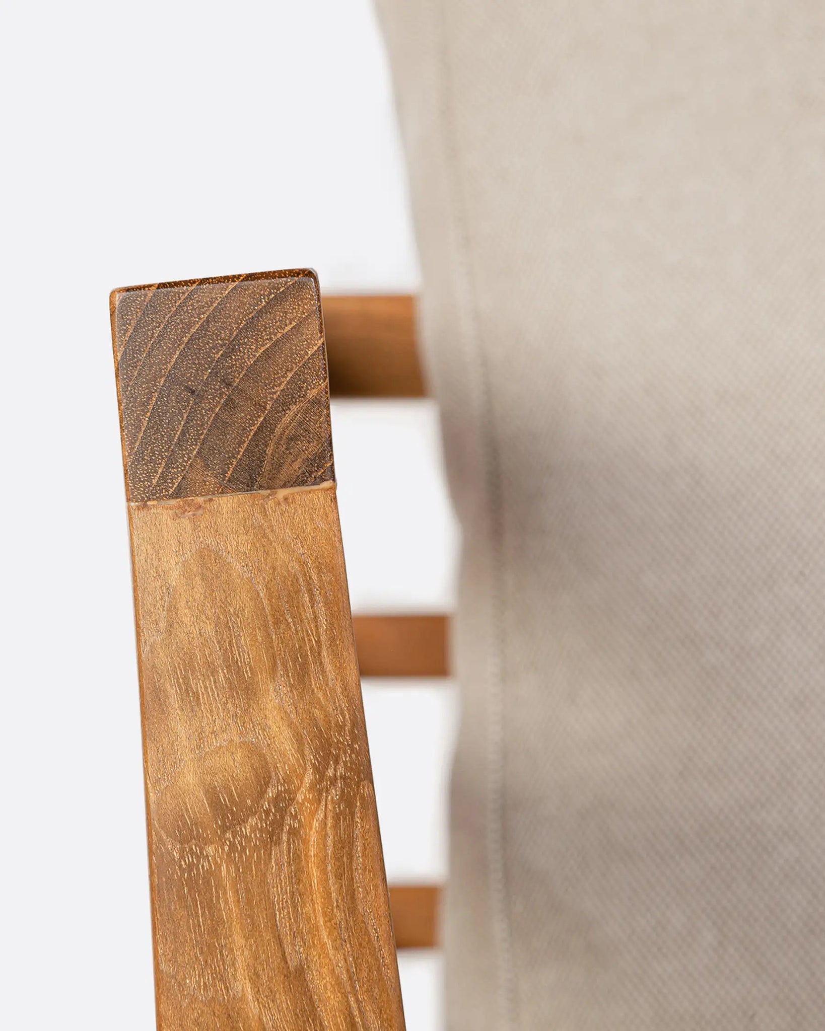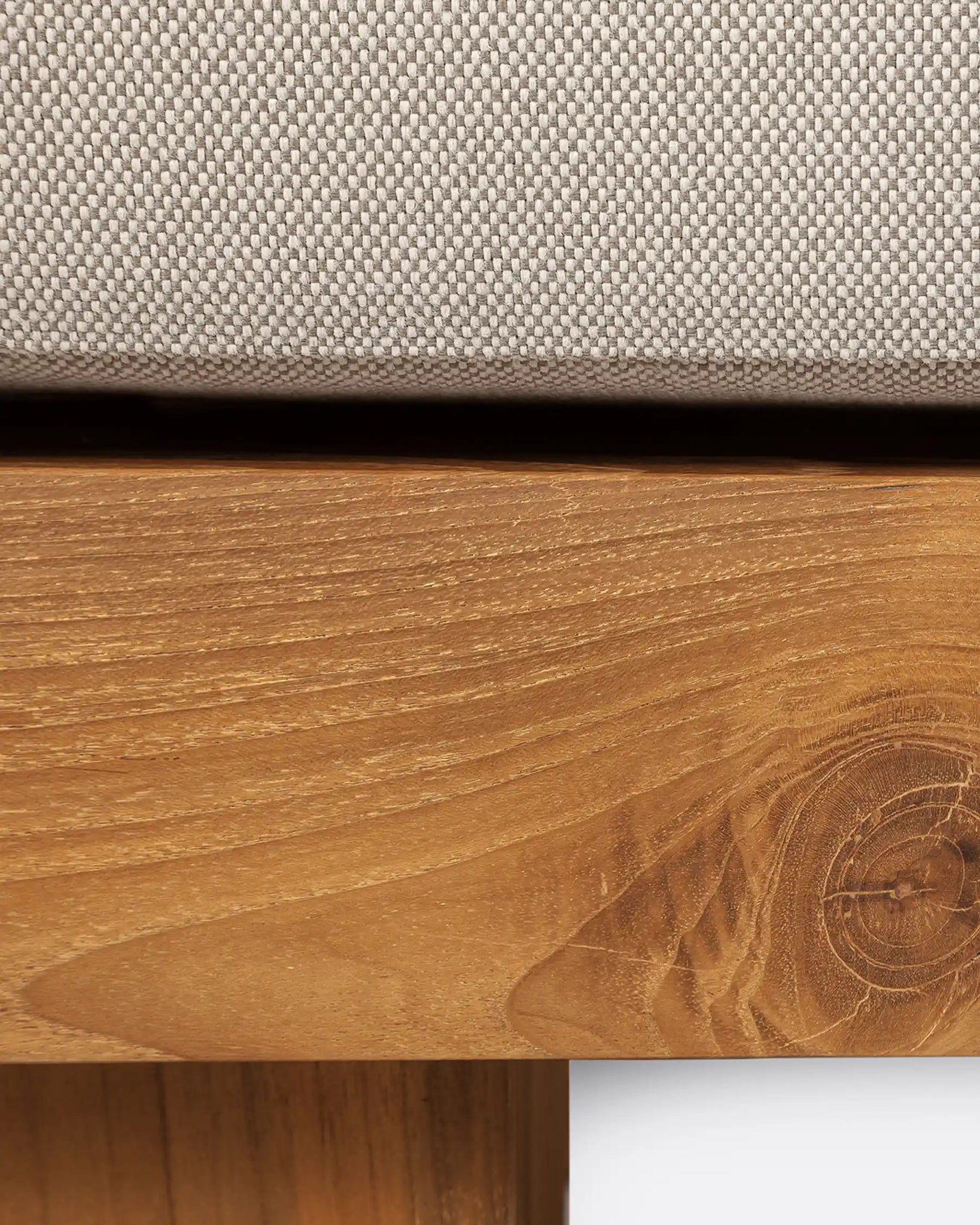 The STRAUSS outdoor sofa combines design, sustainability and craftsmanship. It is made from recycled teak, with a natural finish and meticulously crafted by hand. Teak is a material whose natural properties make it ideal for patios, gardens or any outdoor space. The slatted design of the backrest, which closes at the sides to form the armrests, has a slight back angle that improves comfort and adds uniqueness to the design. The upholstery of the mattress and cushions is made of olefin, a 100% recycled yarn from textile waste, which offers superior resistance to water, mildew and sunlight. The STRAUSS outdoor sofa is available in three upholstery colours and four combinable sizes: 1-seater, 2-seater, 3-seater and 4-seater corner sofa.