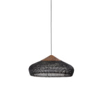 The Banjo Lamp shows a natural take on classic pendant lighting. It has a teak top and organically shaped handwoven rattan details all down the side, crafted according to ancient Javanese technique. Available in various sizes and in natural or charcoal finish. Hang alone, or create a cluster of pendants, mixing various sizes and shapes.