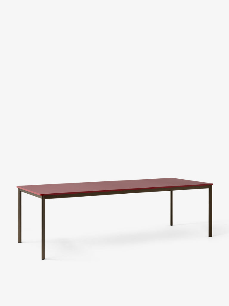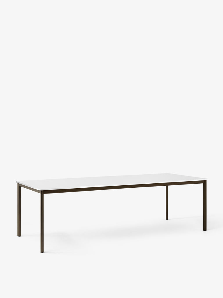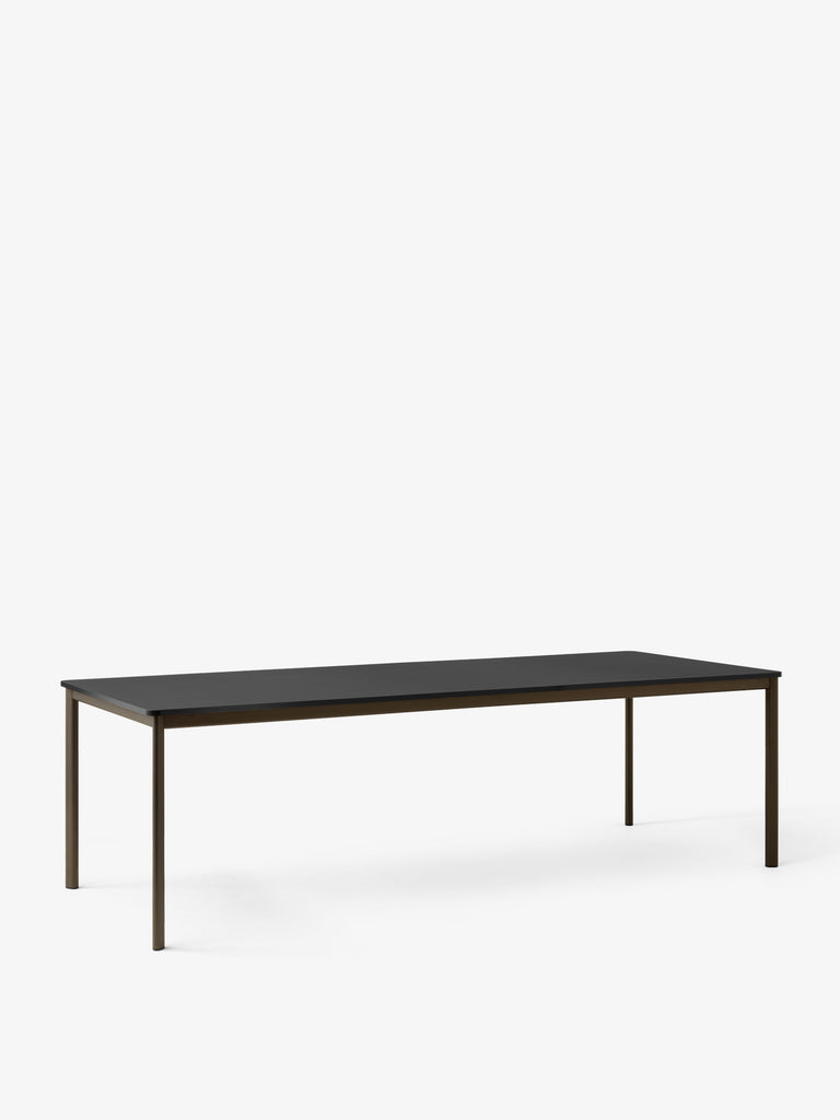 Product Details Product CategoryTable Production processThe frame is made from extruded aluminium which is powder coated. The table top is made from MDF covered with veneer, linoleum or laminate. EnvironmentIndoor MaterialAluminium base, MDF table top with Fenix Nano laminate, Forbo linoleum or wood veneer with matching colour high gloss edge bands for laminate & linoleum and matching edge bands for wood veneer. Table top finishesBlack Fenix Nano Laminate (0720)Off White Fenix Nano Laminate (0029)Made to order (6-8 weeks lead time):Linoleum – all coloursNano Laminate – all coloursVeneer – Oak or walnut Base finishesBlack, Bronzed GlidersPlastic gliders are installed as standard.Castors available upon request (6-8 weeks lead time). DimensionsH: 74cm/29.6in, W: 100cm/40in, D: 250cm/100inCustom sizes are available with 6-8 weeks lead time. WeightProduct: 49kg Strength, Durability and Safety TestingThe table is tested for strength, durability and safety according to: – EN 16139 Level 2 – Extreme use. Package dimensions and weightTable top: H: 7cm/2.8in, W: 104cm/41.6in, D: 254cm/101.6in, 39.4kgTable frame: H: 8cm/3.2in, W: 258cm/103.2in, D: 26cm/10.4in, 16kg