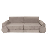 Additionally, the sofa comes with two small poufs that can be used as support during playtime. They are not only an additional decorative element but also functional accessories that enhance the joy and convenience of using the sofa.