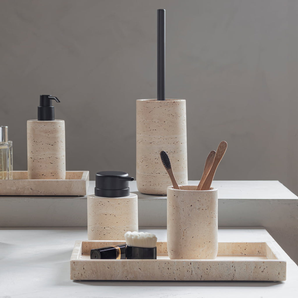The TRAVERTIN tray is a beautiful and functional piece crafted from the iconic travertine stone, celebrated for its distinctive indentations, natural texture, and earthy tones. Perfect for organizing toiletries in the bathroom, gathering oils and spices in the kitchen, or creating an elegant base for decorations in the living room. Sturdy and versatile, it is both a decorative and practical addition to any room.