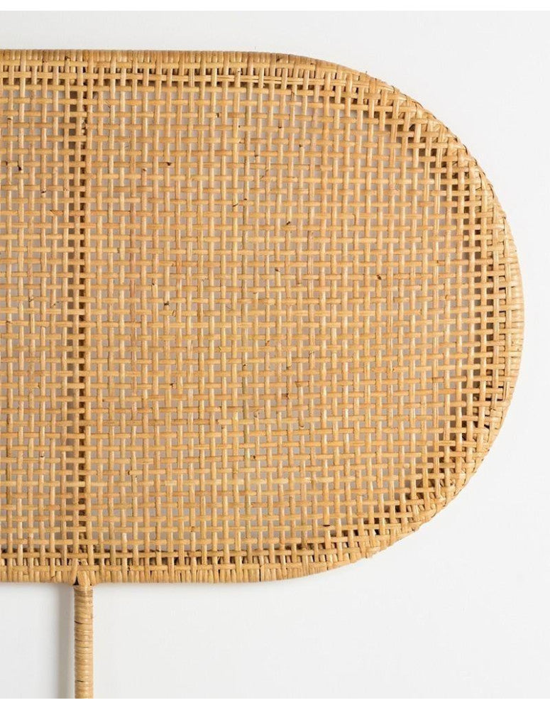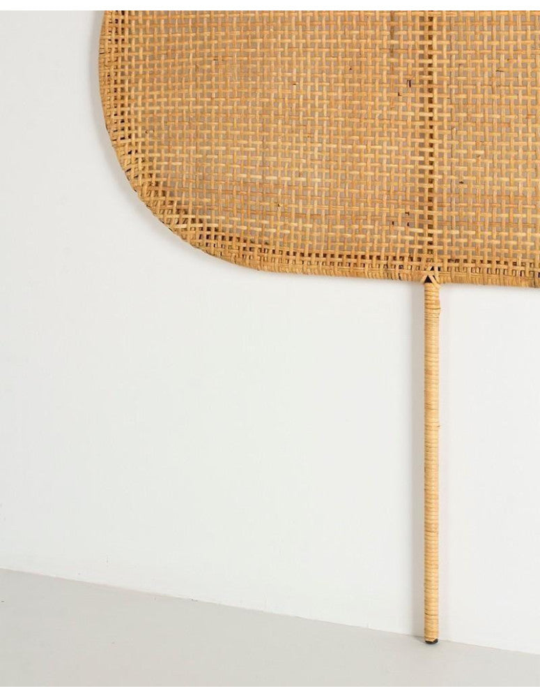 Headboard made of willow rattan with metal frame. Its noble material and rounded design make it very appropriate for your bedroom to create a calm and harmonious atmosphere. You can combine it with our natural wood bedside tables.