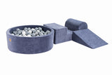 Foam 3 elements Playset with Ball Pit 90x30cm with 200 Balls Certified, Velvet, Blue-Gray: Grey/White