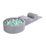 Foam 3 elements Playset with Ball Pit 90x30cm with 200 Balls Certified, Velvet, Light Grey: White/Gray/Mint