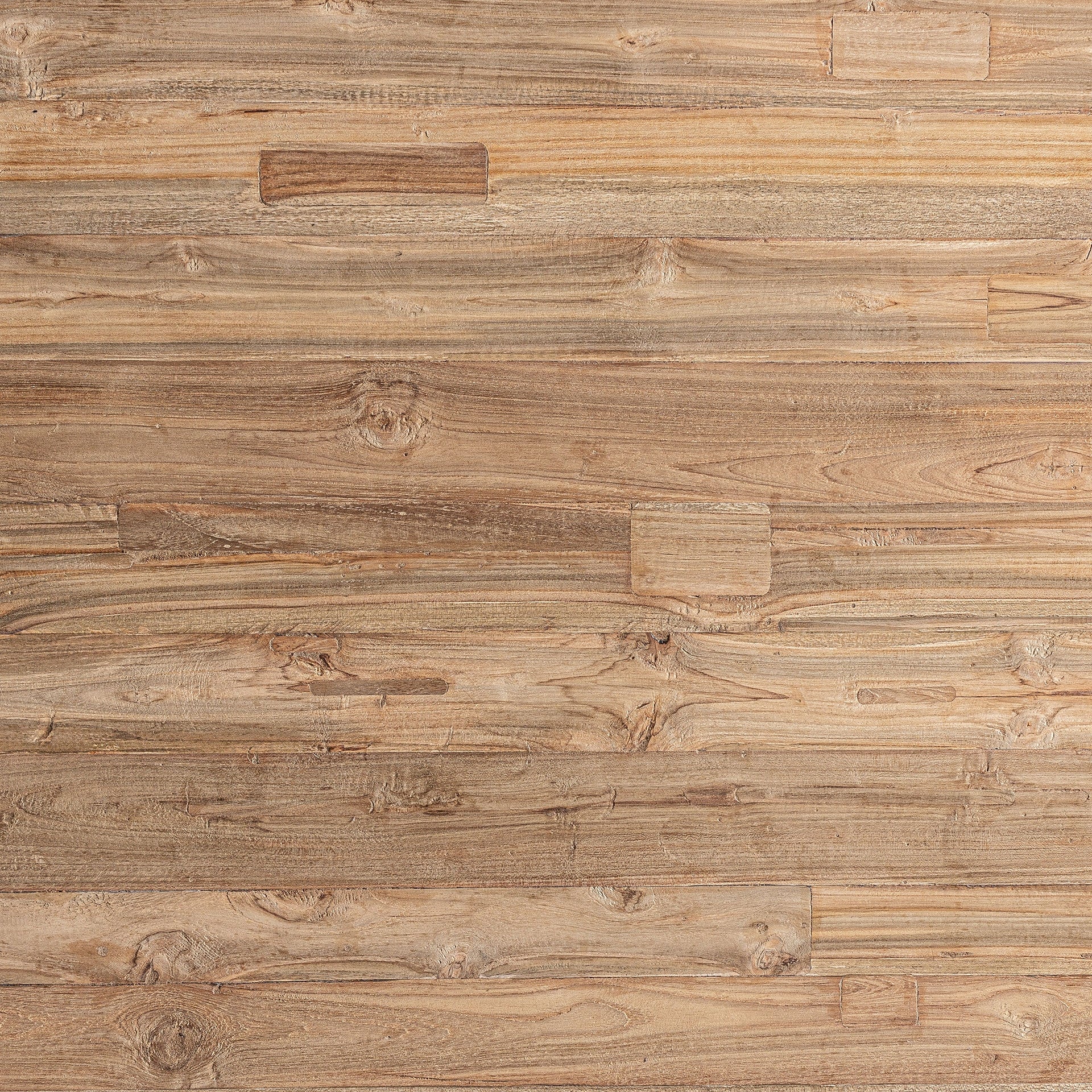 A refined design with a natural essence. The dining table is made of brown reclaimed teak, ideal for modern interiors that seek balance between simplicity and authenticity. Detachable.