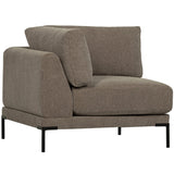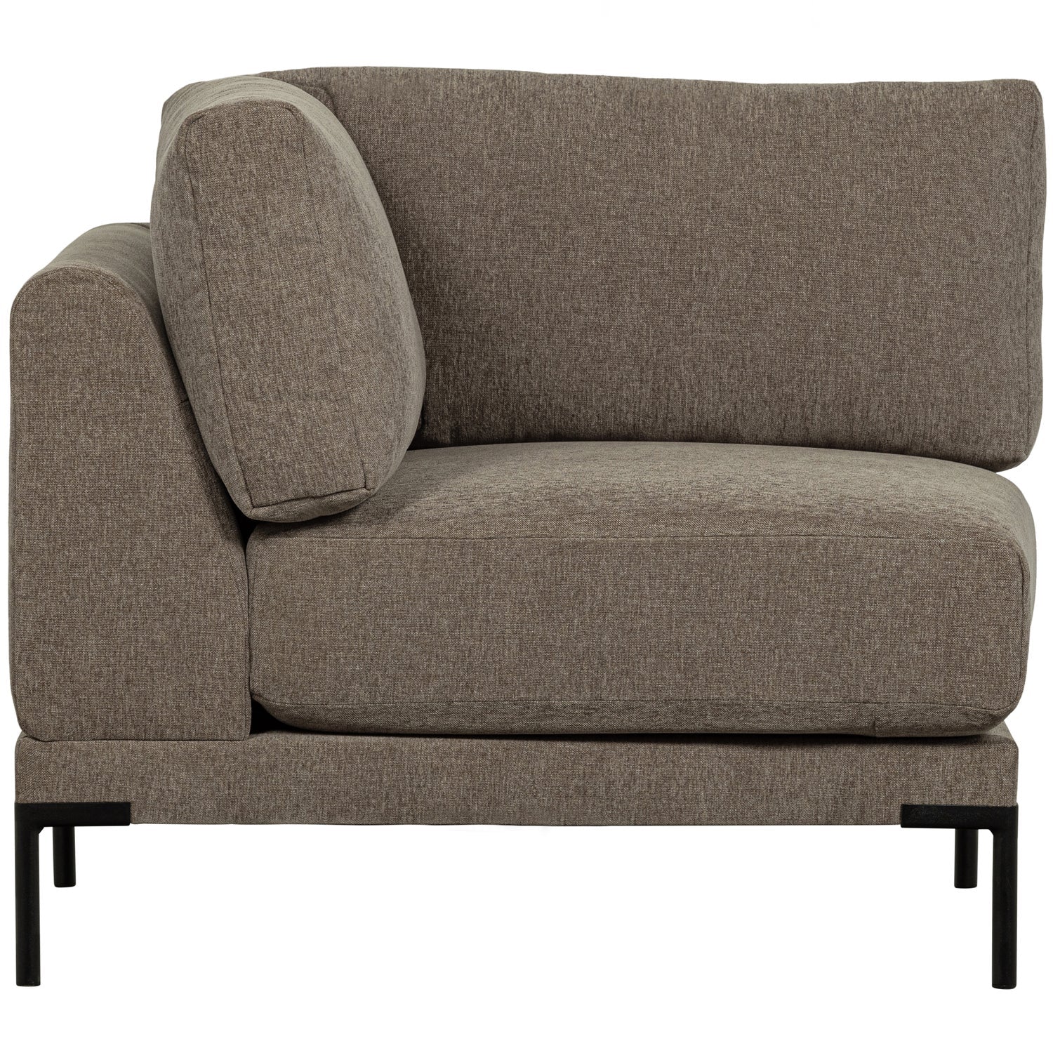 Part of the vtwonen Couple series Airy design through the high, stylish leg Upholstered with a woven chenille fabric (100% polyester) H 89 cm x W 100 cm x D 100 cm Expand, slide and rearrange. With the Couple series of elements from vtwonen, you create the ultimate in flexible seating. The stylish design is emphasised by the high, black leg with a cylinder shape. The comfortable cushions are upholstered in a woven melange fabric that feels extra soft thanks to the chenille woven in. Choose from one of the six timeless colours or opt for a combination of the earthy shades to create an extravagant seating area. Place, pair, ready! Material The Couple series is upholstered in a woven chenille. Our Gilli chenille has a distinctive texture, providing a luxurious look and special sheen. The soft fabric is made of 100% polyester. The coarse-textured chenille has a Martindale of 100,000, making it highly resistant to loops, fading and wear. Dimensions Height: 89 cm Width: 100 cm Depth: 100 cm Seat height: 44 cm Seat width: 57 cm Seat depth: 57 cm Armrest width: 24 cm Leg height: 13 cm Leg thickness: O 2.5 cm Load capacity: 90 kg Weight: 47 kg Maintenance Small stains can be easily removed with a damp cloth. For persistent stains, it is recommended to dab the fabric with a damp cloth and a neutral furniture shampoo. On the favourite seat, a shiny seat surface may appear after some time. Delivery The Couple elements are delivered individually. The elements are easy to connect with the alligator clip connectors already fitted. To protect hard floors, place felt glides on the underside of the legs.