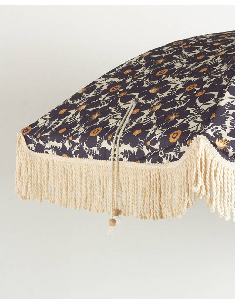 Beach parasol made of high-quality polyester that ensures waterproof and UV-proof. The beech wood pole and the 8 fibreglass rods that make up its structure provide greater stability and wind resistance. Our Nava parasol has an original design with cotton fringes. It is available in a range of vibrant colours and prints, ideal for adding a unique style to your beach days. The Nava beach parasol comes with a matching carry bag, making it easy to transport and easy to take with you to the beach or the pool in a very unique style so it will fascinate everyone.