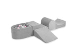 Foam Playset with Small Ball Pit Playground for Children with 100 Balls Certified, Velvet, Light Gray: Gray/White/Pastel Pink