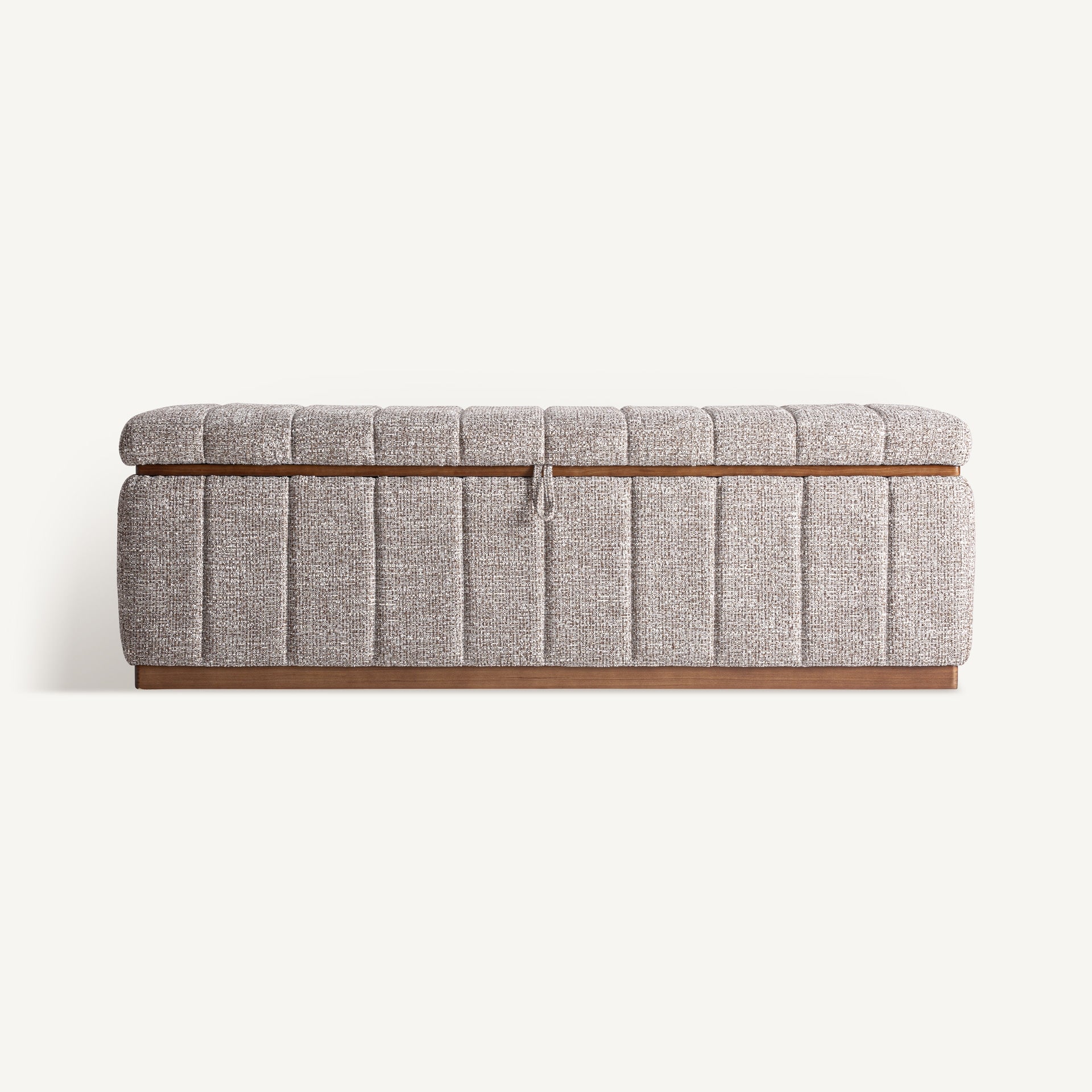 Style contemporary, made of polyester in grey with a marbled finish, combined with brown oak wood and foam. Width: 143cm , Depth: 47cm , Height: 46cm