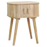 Bedside table in slatted MDF with 1 drawer with handles in pine wood.