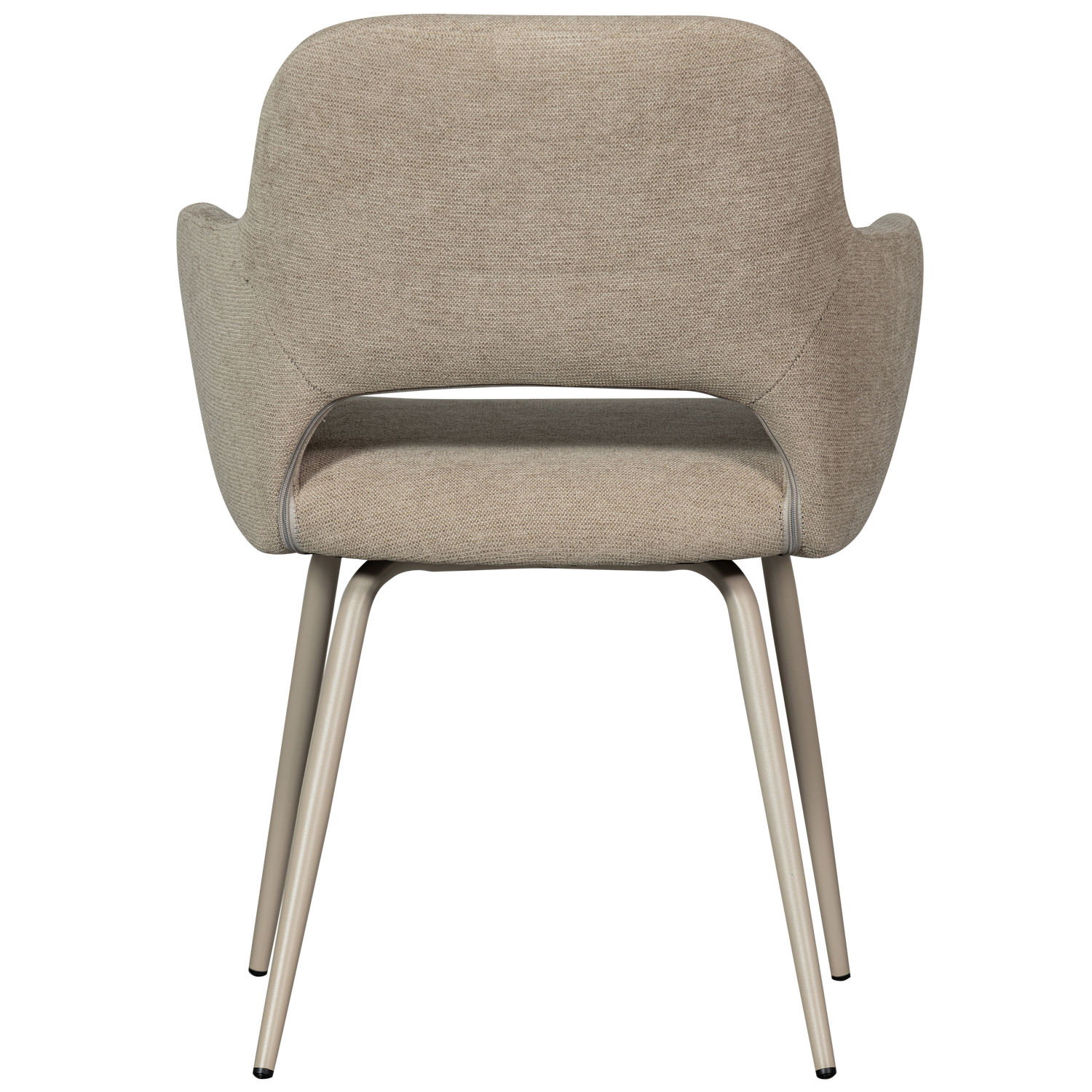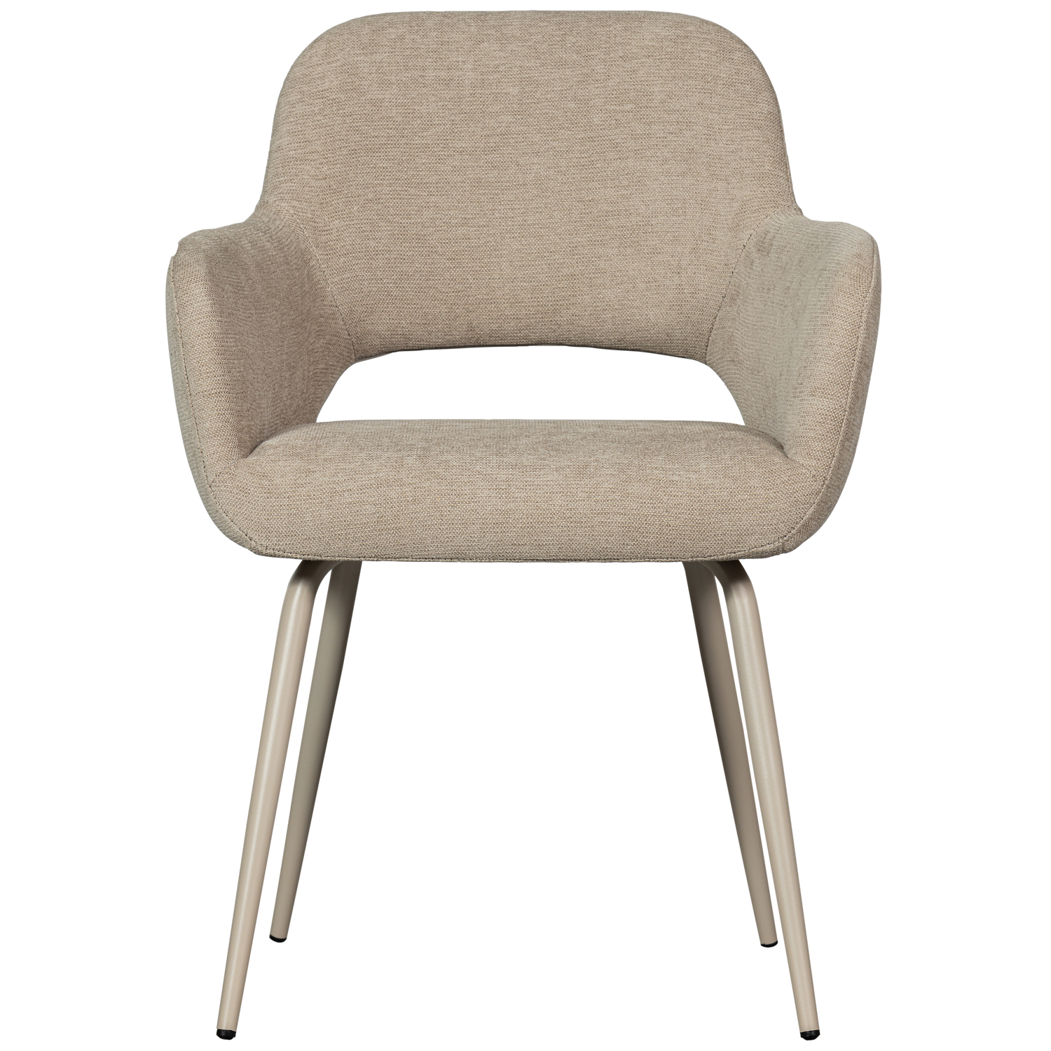 Trendy dining chair Jenny Upholstery in woven fabric (100% PES) Comfortable seat H 80 cm x W 58 cm x D 58 cm The Jenny dining chair has a comfortable seat and is a very pleasant addition to the dining area. Jenny belongs to the collection of Dutch interior design brand WOOOD. The rounded finishes and back support give the chair great comfort. This allows you to enjoy hours of dining with the Jenny! Material Our Hope woven fabric has a soft feel and is striking for its subtle colour nuances. This flat woven fabric is made of 100% polyester and has an even, compact weave pattern. The Hope woven fabric has a Martindale 50,000, and is suitable for fairly intensive residential use. Dimensions Height: 80 cm Width: 58 cm Depth: 58 cm Seat height: 47 cm Seat width: 42 cm Seat depth: 45 cm Armrest height: 25 cm Armrest width: 7 cm Armrest depth: 32 cm Backrest height: 28 cm Height of intermediate section of backrest: 9 cm Foot height: 41 cm Leg thickness: 3 cm Leg spacing inside front: 45 cm Space between legs inside rear: 45 cm Space between legs inside side: 47 cm Capacity: 100 kg Weight: 7 kg Maintenance The woven fabric is easy to maintain, remove stains easily with a slightly damp cloth and a neutral detergent. When the fabric can be removed from the furniture, it can be washed at 30 degrees. It is recommended to wash covers inside out in the washing machine whenever possible. Delivery The article is delivered in pairs with a minimum purchase of two pieces. The article is easy to assemble using the supplied assembly instructions. To protect hard floors, place felt glides on the underside of the leg to prevent damage.