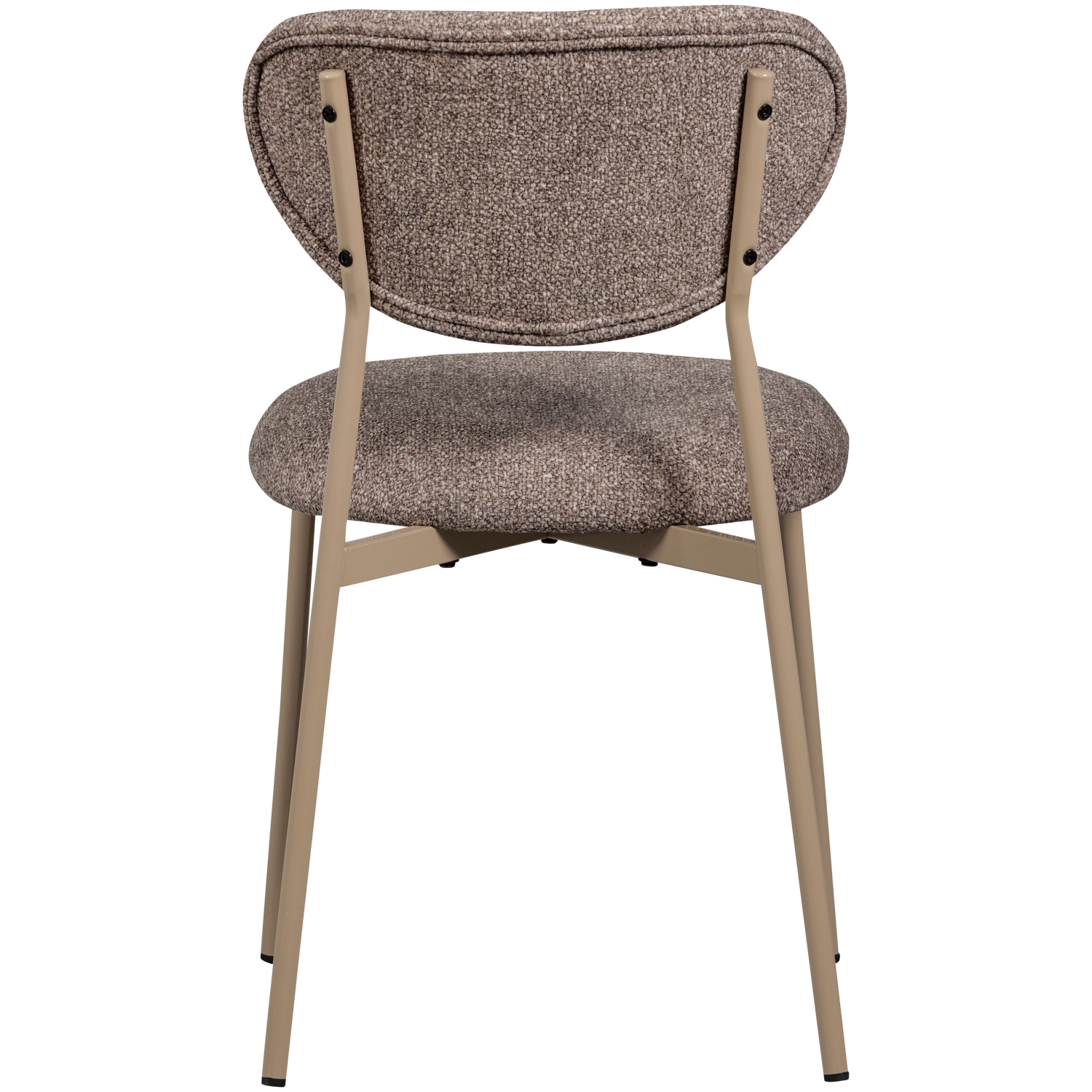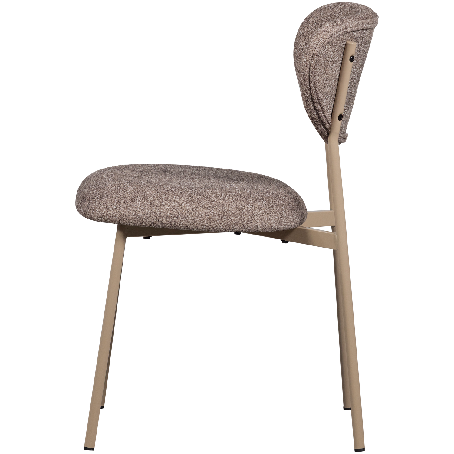 Comfortable dining chair with a modern look Upholstered in woven fabric (100% polyester) Metal base in matching colour Stackable H 77 cm x W 46 cm x D 56 cm The Valor dining chair comes from the collection of the Dutch brand WOOOD and has a sleek look. The dining chair is upholstered in a woven fabric and features a slim metal base in matching color. This modern design ensures hours of after-dinner dining and should not be missing in your interior. Material Our Ribbon woven fabric has a soft and luxurious appearance. The composition consists of 100% polyester, which makes the fabric both sturdy and comfortable. The fabric has a Martindale value of 50,000. With proper care, our Ribbon Woven fabric can maintain its soft and attractive appearance for years. Dimensions Height: 77 cm Width: 46 cm Depth: 56 cm Seat height: 48 cm Seat width: 47 cm Seat depth: 41 cm Leg height: 40.5 cm Diameter legs: 2.5 cm Width between legs front: 40 cm Width between legs side: 38.5 cm Back height: 37 cm Height from ground to top of backrest: 76 cm Weight: 5 kg Max. weight: 120 kg Maintenance Keep it clean by vacuuming regularly. Use a vacuum with a soft brush to avoid damaging the structure. Stains? Use a water-based solution to remove the stain and wipe again briefly with a damp cloth. Do not rub, but dab! Rubbing leads to damage or light stains in the fabric. Avoid prolonged exposure to direct sunlight to maintain the best quality of the fabric. Delivery The item is delivered in one package. The item is easy to assemble using the clear assembly instructions. Place felt glides at the bottom to protect hard floors. Comfortable dining chair with modern look Upholstered with a woven fabric (100% polyester) Metal base in matching color H 77 cm x W 46 cm x D 56 cm The Valor dining chair comes from the collection of the Dutch brand WOOOD and has a sleek look. The dining chair is upholstered in a woven fabric and features a slim metal base in matching color. This modern design ensures hours of after-dinner dining and should not be missing in your interior. Material Our Ribbon woven fabric has a soft and luxurious appearance. The composition consists of 100% polyester, which makes the fabric both sturdy and comfortable. The fabric has a Martindale value of 50,000. With proper care, our Ribbon Woven fabric can maintain its soft and attractive appearance for years. Dimensions Height: 77 cm Width: 46 cm Depth: 56 cm Seat height: 48 cm Seat width: 47 cm Seat depth: 41 cm Leg height: 40.5 cm Diameter legs: 2.5 cm Width between legs front: 40 cm Width between legs side: 38.5 cm Back height: 37 cm Height from ground to top of backrest: 76 cm Weight: 5 kg Max. weight: 120 kg Maintenance Keep it clean by vacuuming regularly. Use a vacuum with a soft brush to avoid damaging the structure. Stains? Use a water-based solution to remove the stain and wipe again briefly with a damp cloth. Do not rub, but dab! Rubbing leads to damage or light stains in the fabric. Avoid prolonged exposure to direct sunlight to maintain the best quality of the fabric. Delivery The item is delivered in one package. The item is easy to assemble using the clear assembly instructions. Place felt glides at the bottom to protect hard floors.