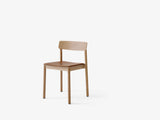 Named after the Betty Nansen theatre in Copenhagen, this stackable chair comes in two versions: one with a seat made from exposed webbing crafted from natural linen fibres, and another with a solid wooden seat. It is available in four colour combinations: Lacquered Solid Oak with natural webbing, Black Lacquered Ash with natural webbing, Black Lacquered Ash with black webbing, and Smoked Oiled Oak with natural webbing.
