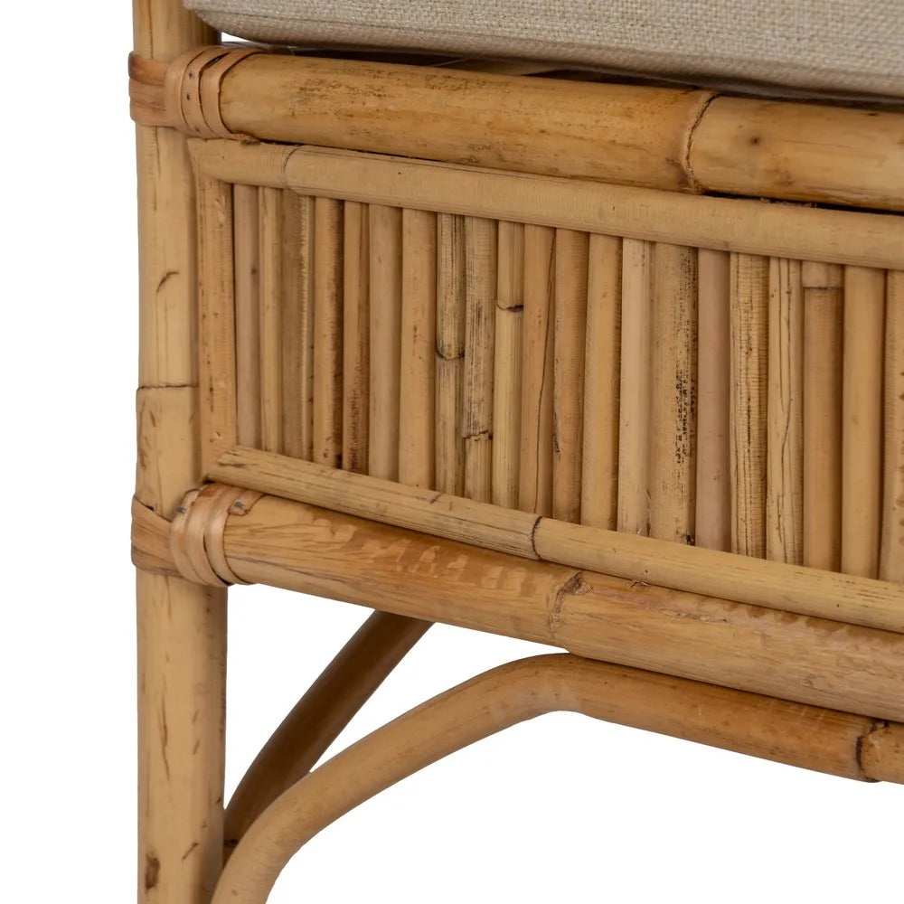 Material: Rattan Seat: 100% polyester Filling: 25D foam Seat cushion thickness: 6cm Removable cushion cover Indoor use Seat height: 50cm Backrest height: 50.5cm