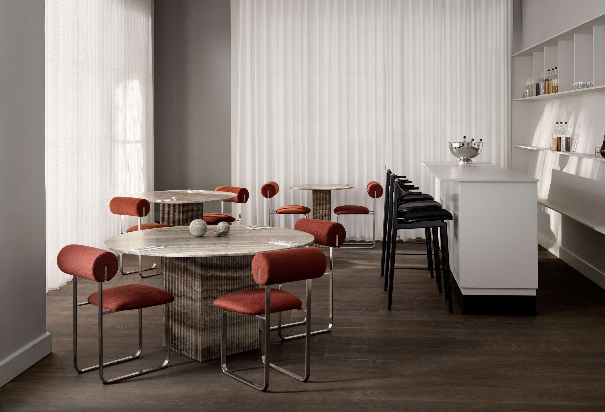 The design of Hippo Steel retains the same architectural quality as its wooden counterpart, with the familiar two-legged profile that has become synonymous with the series. An elegant bend in the steel frame is made intentionally, highlighting a conscious design choice to add a curve to the otherwise angular and stringent frame. The detail also reflects the presence of human craftsmanship in making the chair and serves as an attempt to soften the look of the chair - a very characteristic trait of NORR11 designs.
