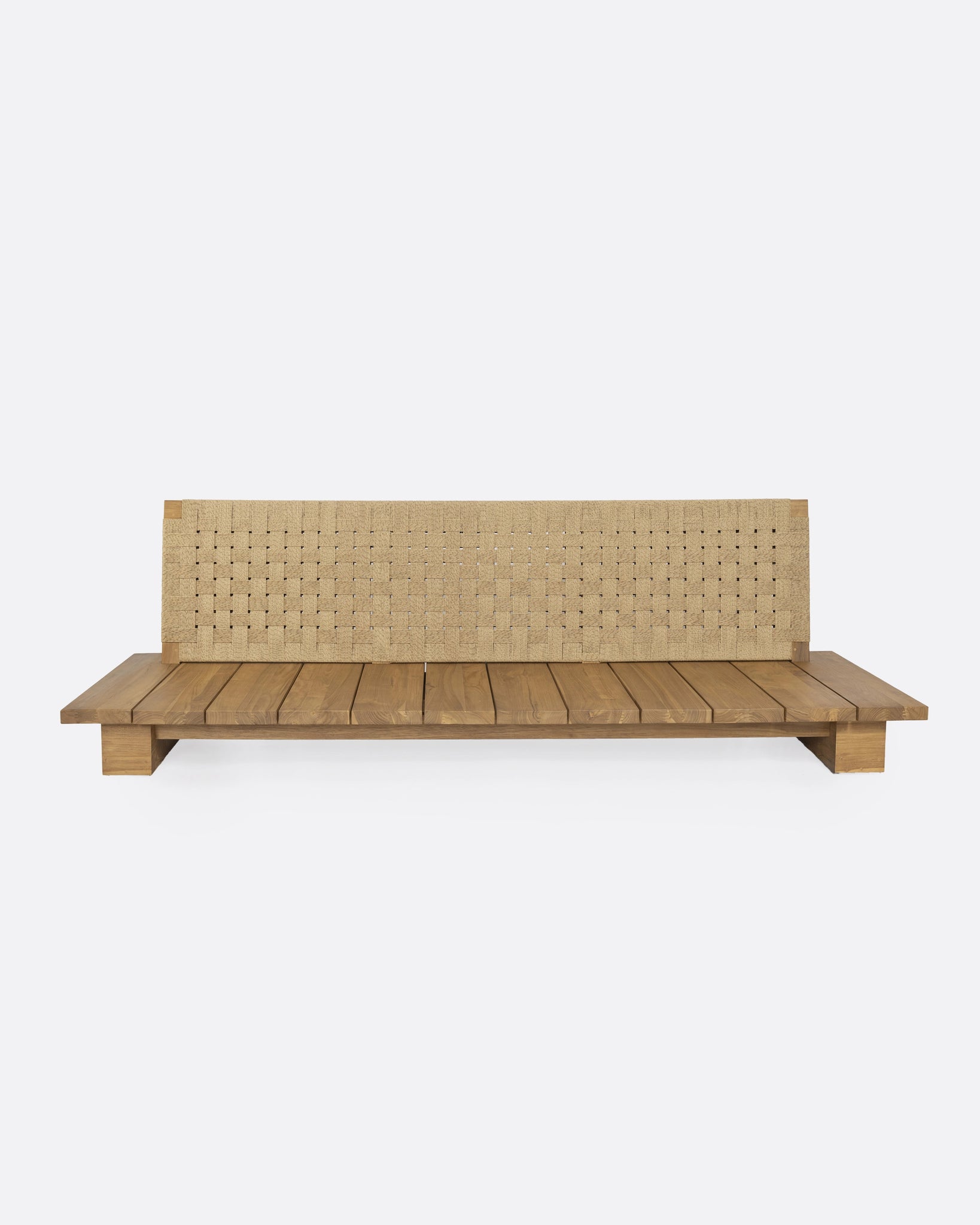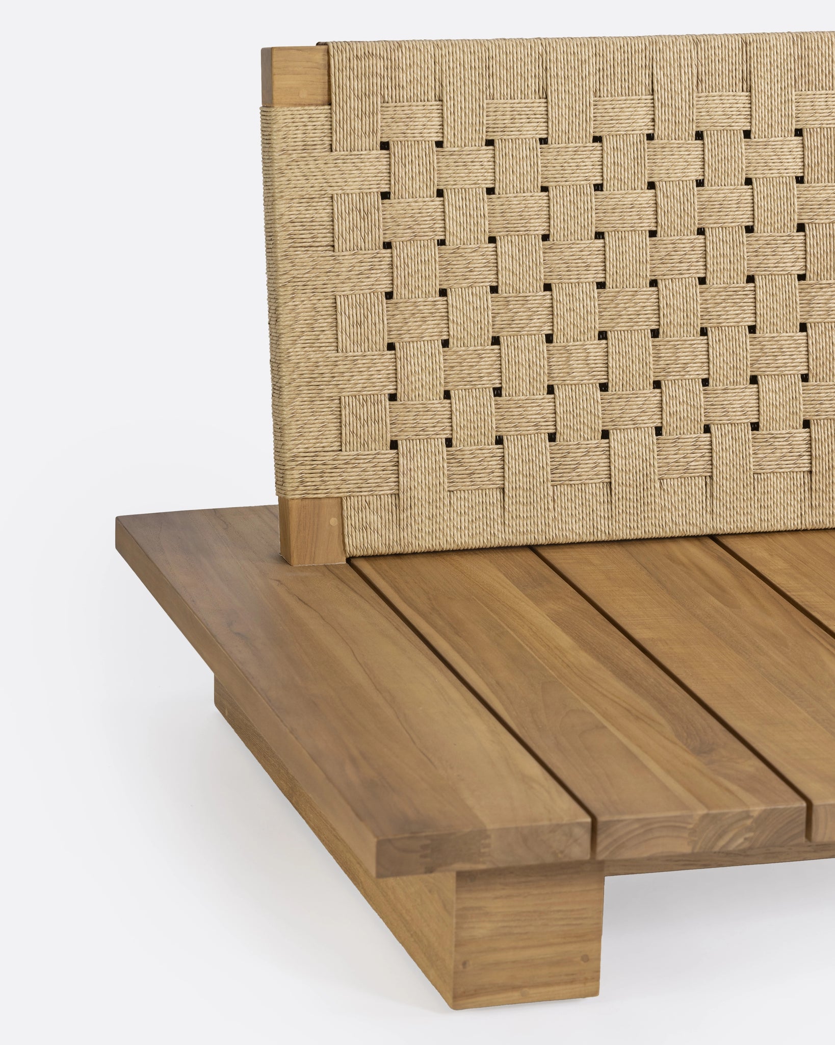 4-seater outdoor sofa in teak wood and synthetic rope 240 x 100 x 72 cm in natural colour and natural textile