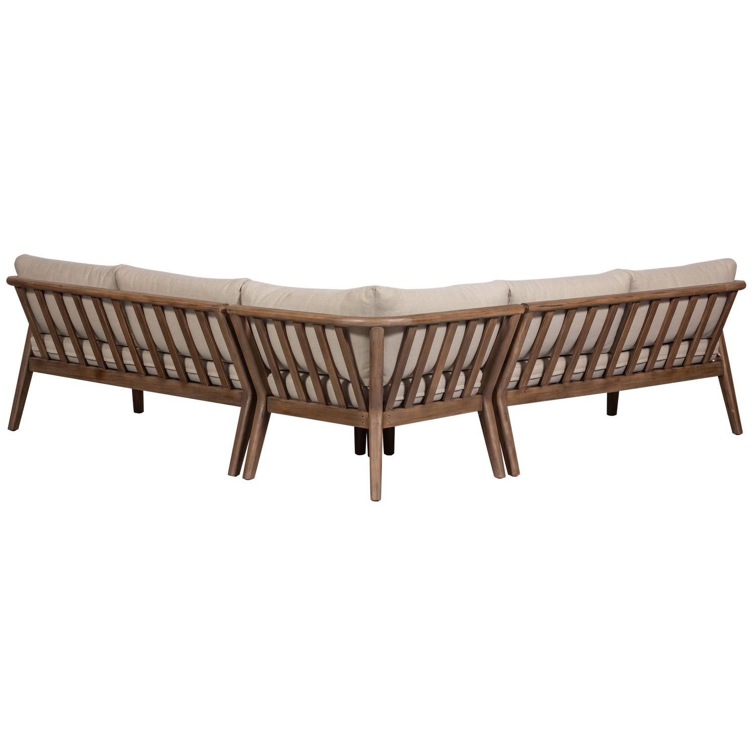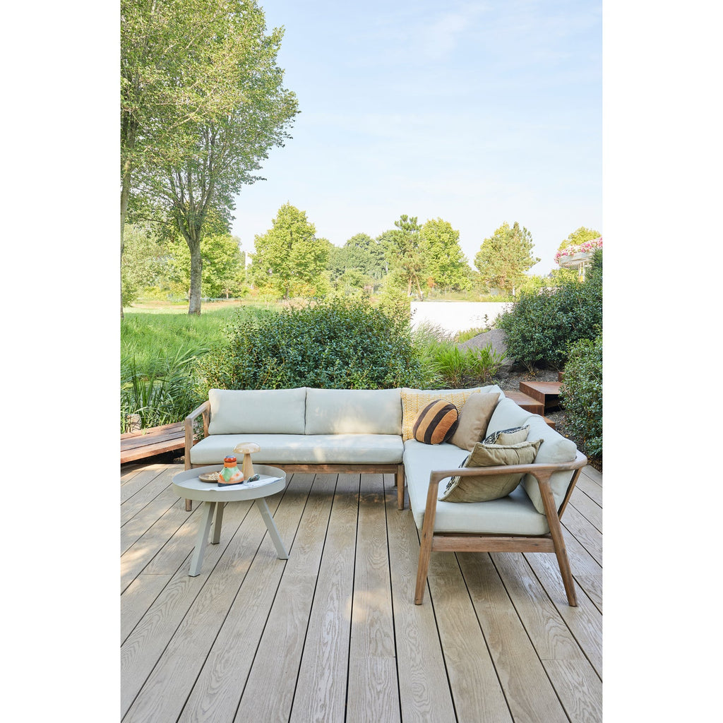 - Generous outdoor lounge set - Upholstered in a sand-colored fabric - Framework made of acacia wood - H 67 cm x W 227 cm x D 227 cm The Biam lounge set comes from the outdoor collection of the Dutch brand WOOOD and will ensure that you enjoy the endless summer evenings. This generous lounge set, made of acacia wood, is the perfect addition to your terrace or balcony. Its generous size allows you to enjoy the long summer days with family or friends to the fullest. Outdoor Protect the furniture from heavy rain, night frost and the winter period with a plastic wrap or protective cover. If possible, it is better for the furniture to spend the winter indoors. Please store cushions in a dry room after use. Material Acacia wood is characterized by its warm, red glow. This color will soften slightly with use and exposure to light. The clear grain and flame drawings give a lot of character to this sustainable type of wood. Color nuances, imperfections and cracks give extra depth and recognition to this natural product.