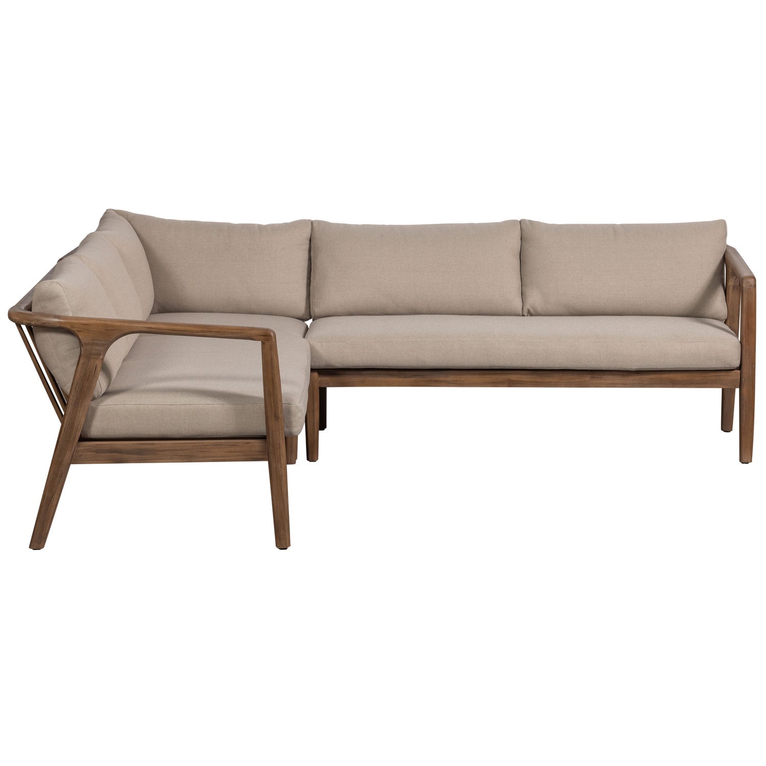 Dimensions - Height: 67 cm - Width: 227 cm - Depth: 227 cm - Total seat width: 200 cm - Seat height with cushion: 42 cm - Seat height without cushion: 31 cm - Seat width corner section: 54 cm - Seat width left and right section: 140 cm - Seat depth with cushions: 55 cm - Weight: 58 kg - Leg height to bottom of frame: 25 cm - Leg diameter: 4.5 cm - Armrest height from the floor: 64 cm - Armrest height from the seat: 23 cm - Armrest width: 5 cm - Backrest height without cushions: 37 cm - Backrest height with cushions: 33 cm - Weight capacity: 100 kg per seat - Cushion thickness: 10 cm