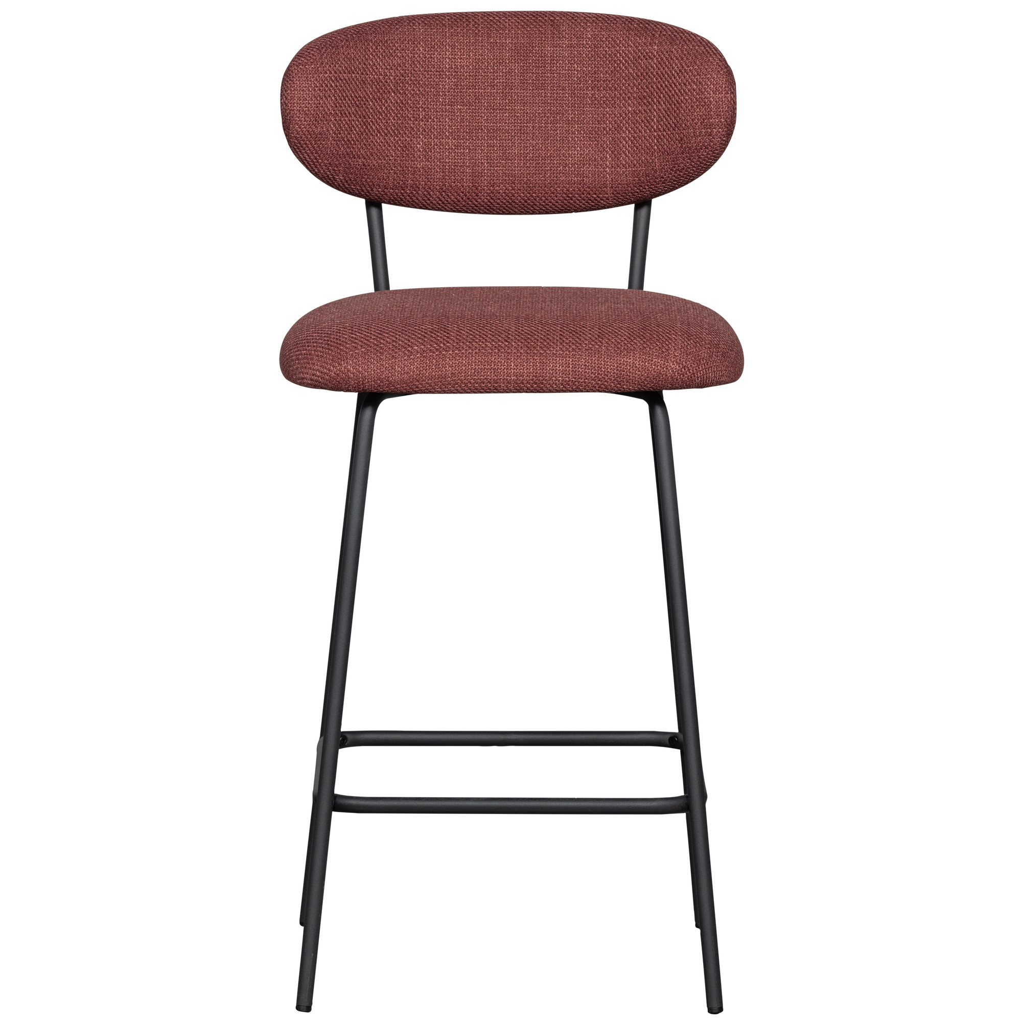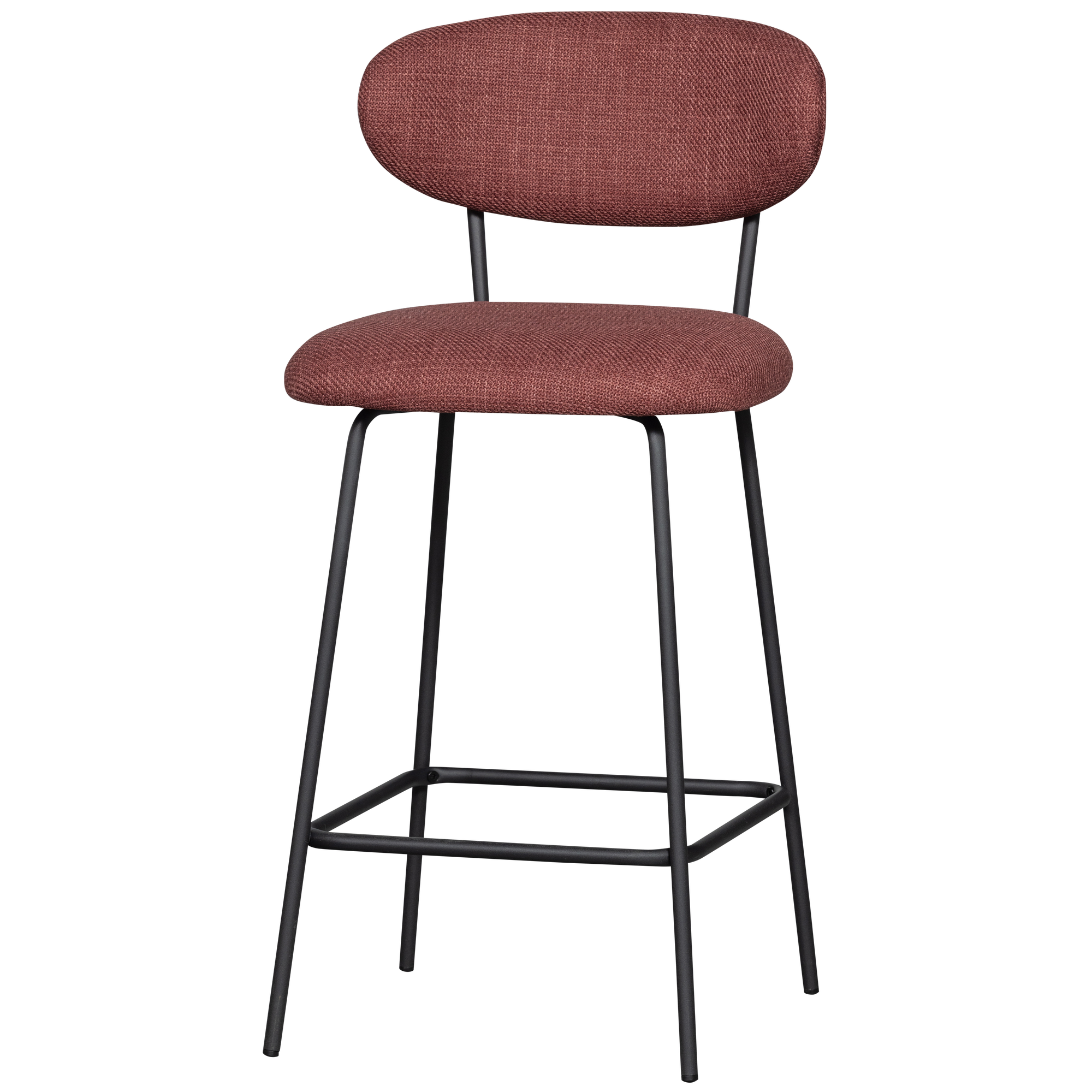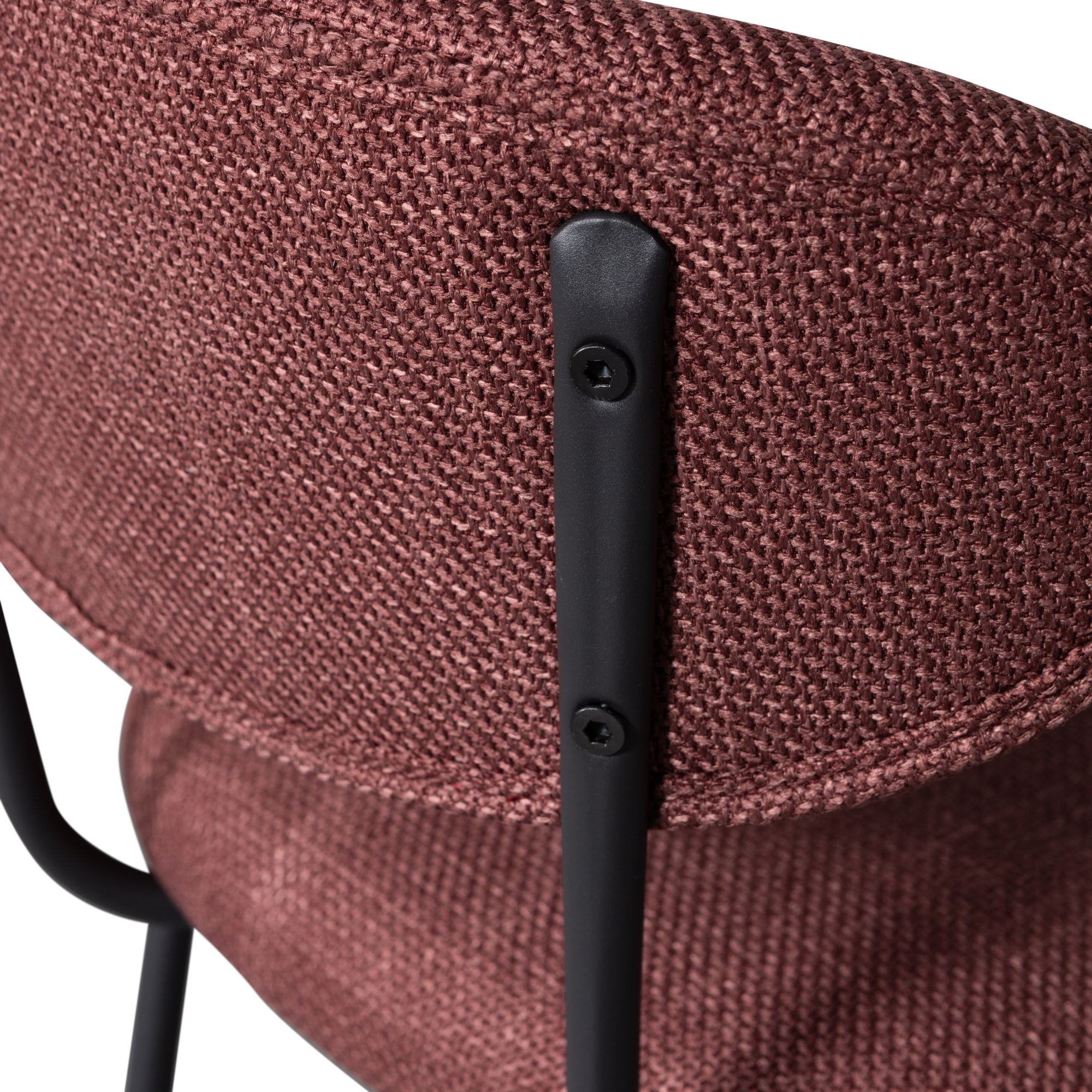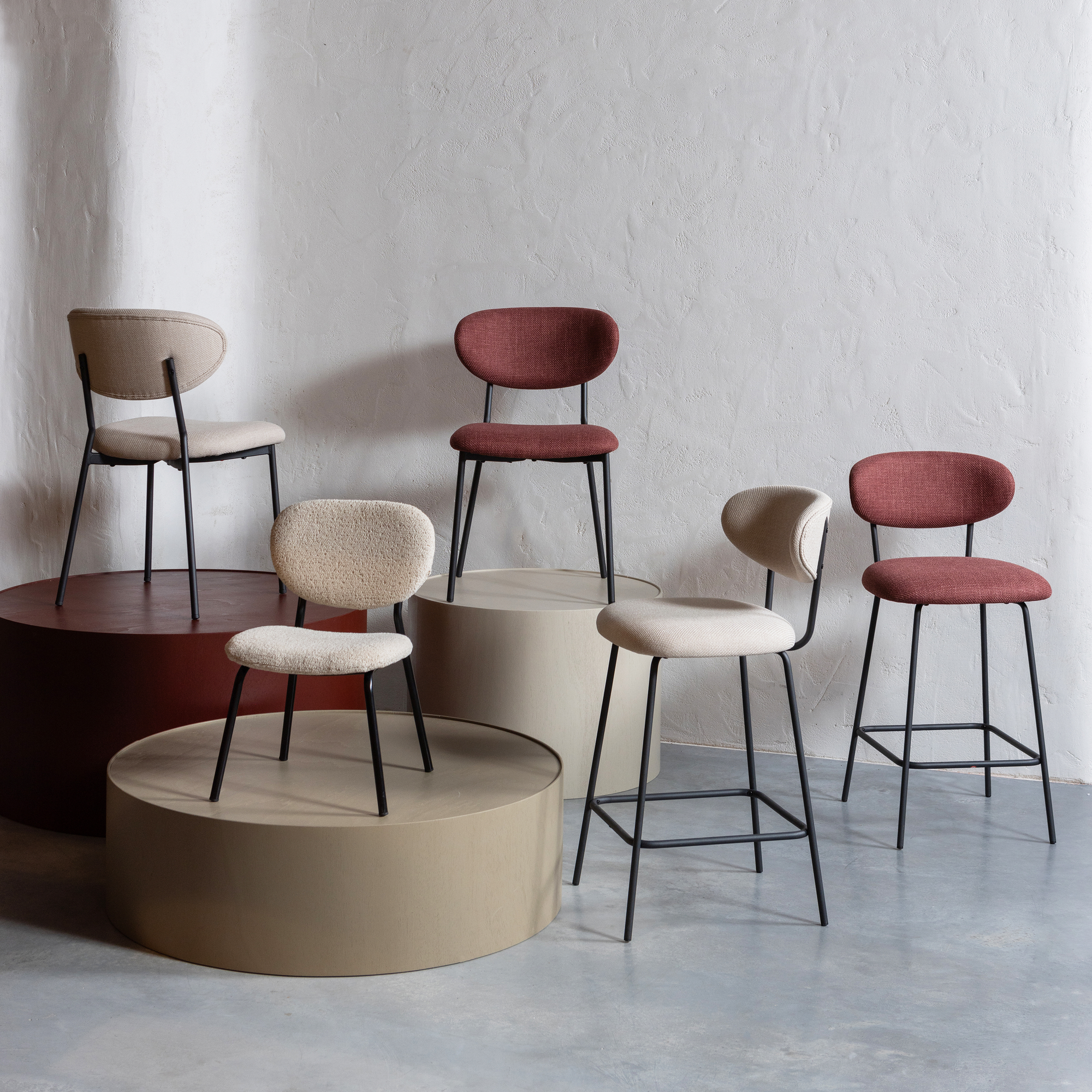 This dining chair is characterised as stylish, yet simple. The Kjeld comes from the collection of Dutch interior design brand WOOOD. The chair has a slim metal base in a black colour. The seat is upholstered in a thick woven fabric with shades of colour. The bulging backrest combined with the fabric makes the Kjeld lovely and comfortable to sit on. Kjeld is also available as a bar stool.
