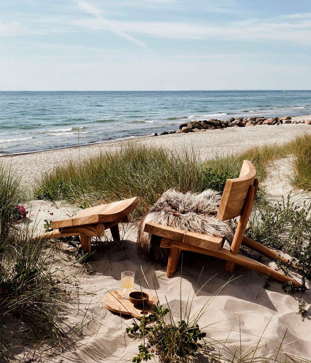 The teak footstool has a seductive, organic and sculptural expression, which invites to snuggle in the shades or in the sun.