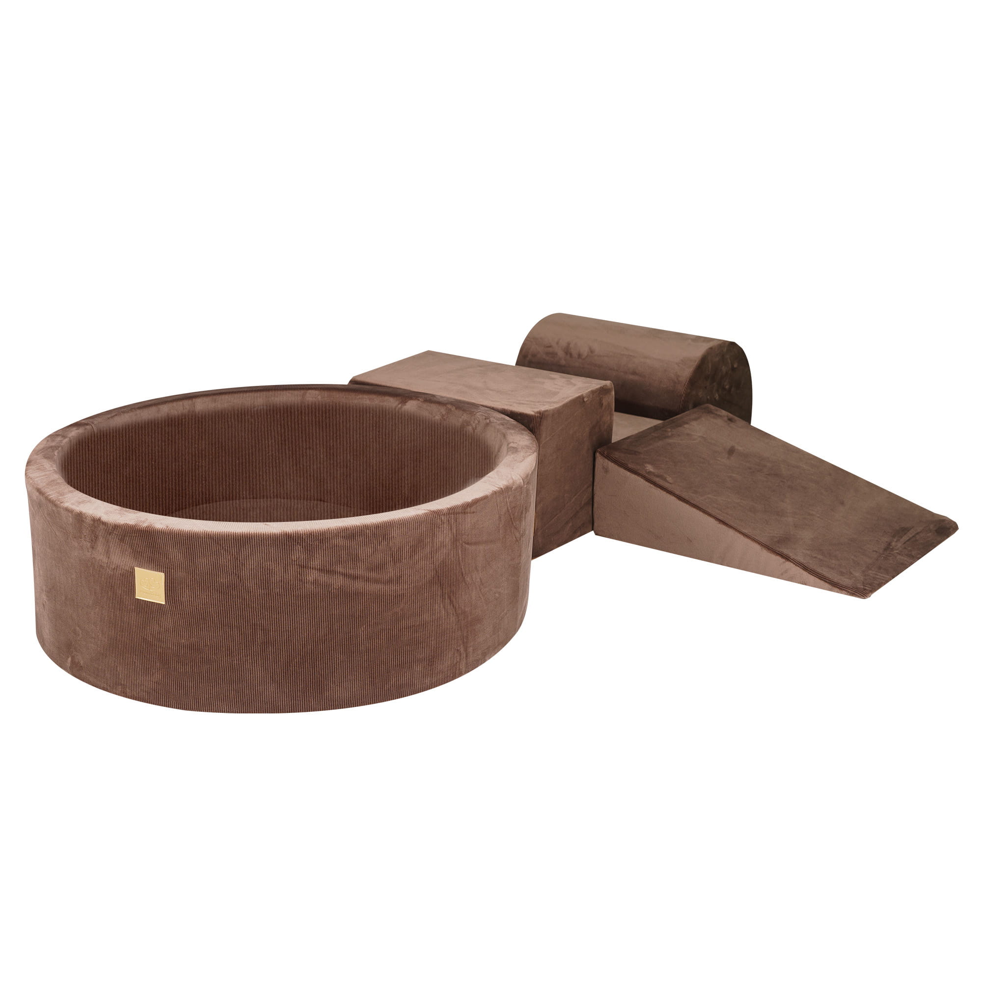 Foam 3 elements Playset with Ball Pit 90x30cm with 200 Balls Certified, Velvet Corduroy, Chocolate, without balls