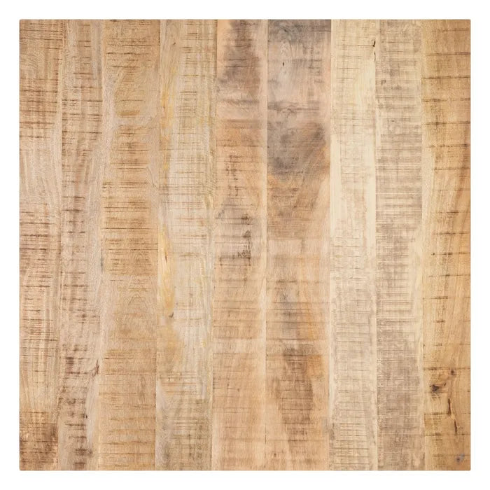 Material: mango wood, iron legs. The surface of the tabletop may not be completely flat due to its handmade fabrication with solid wood slat