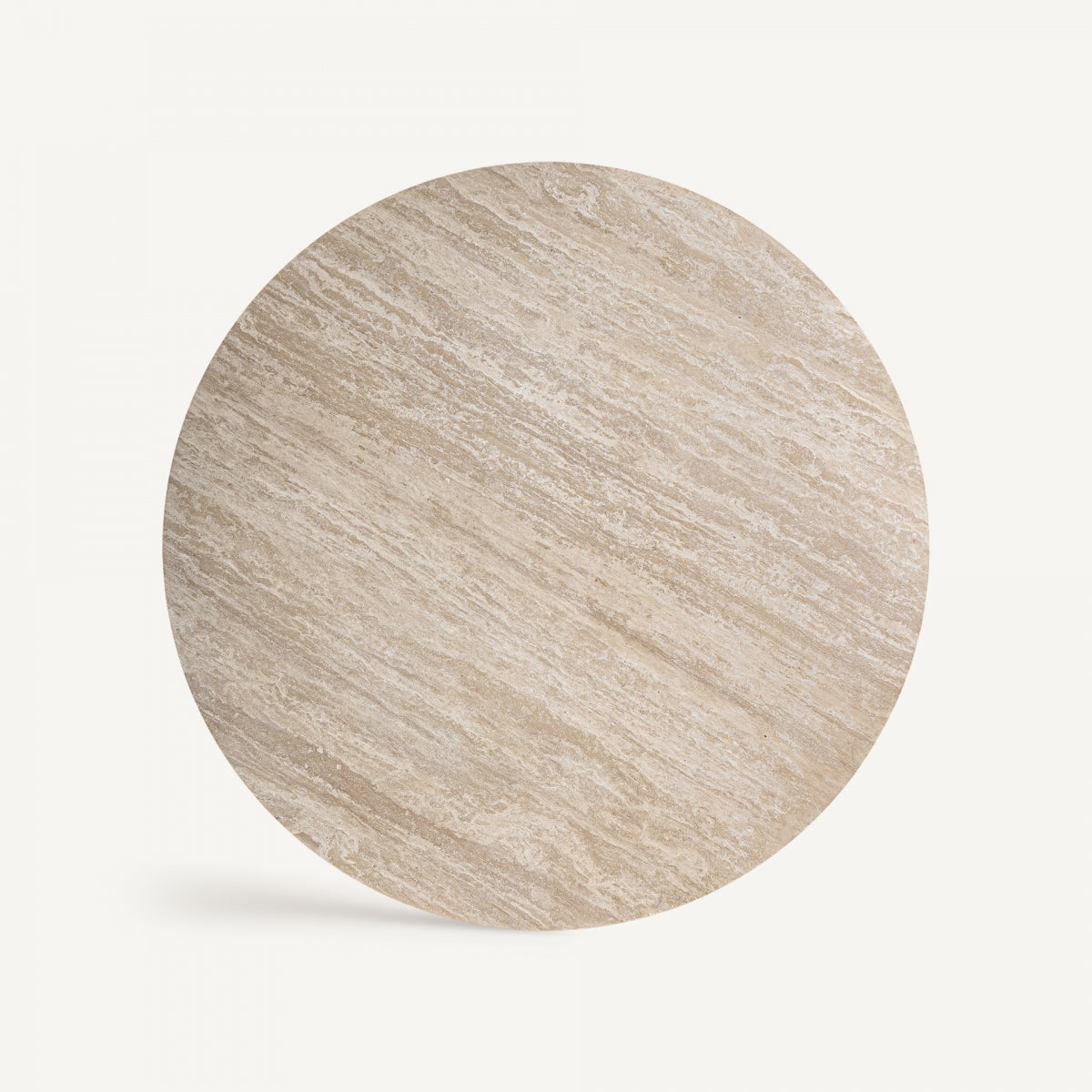 Made of travertine in beige, combined with gold stainless steel with a old finish. Product detachable.