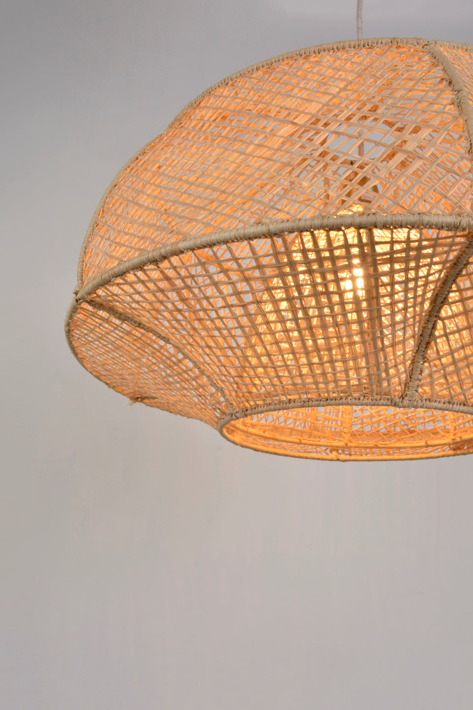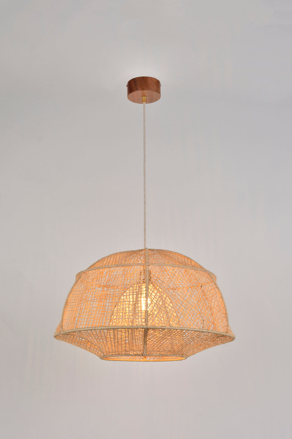 DIMENSIONS Height: 36 cmTotal height: 186 cmDiameter: 58 cmWeight: 2.18 kgPavilion: 12 ht. 5cm CERTIFICATES IP20Class 2 MATERIALS Main material: RaffiaSecondary material: Wood AMPULE Base: E27Power in W: 60
