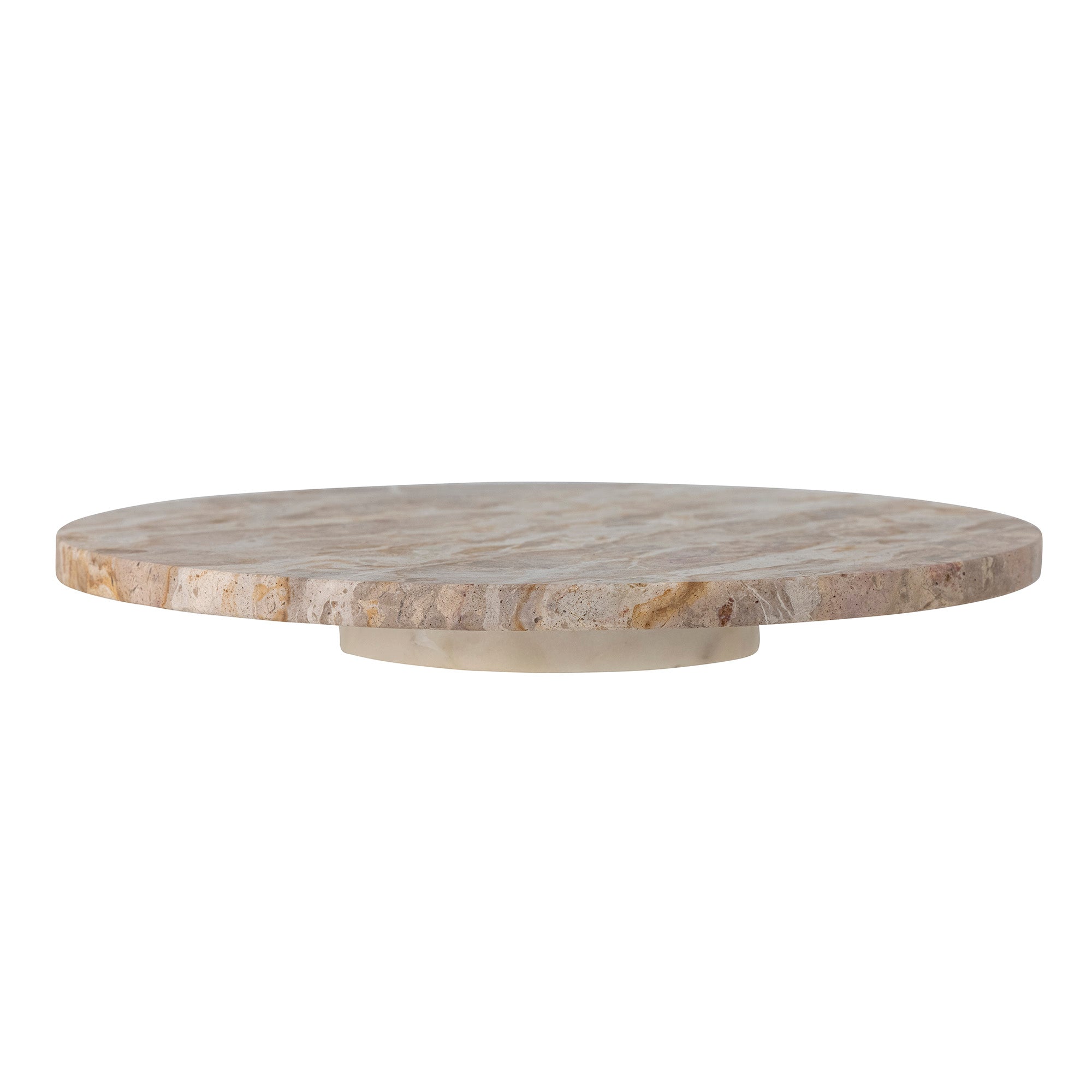 The Nuni Turntable is made in brown marble, in an elegant design. The rotating tray is perfect as a cake stand or for serving tapas, fruit and cheese. The beauty of a natural stone is that no two pieces are exactly alike. Each is a unique piece of art forged by mother nature over millennia using heat, pressure, and lots of different minerals and organic materials. The way these minerals settle into the stone is what causes the huge array of colors, patterns, texture, and veining in each slab.