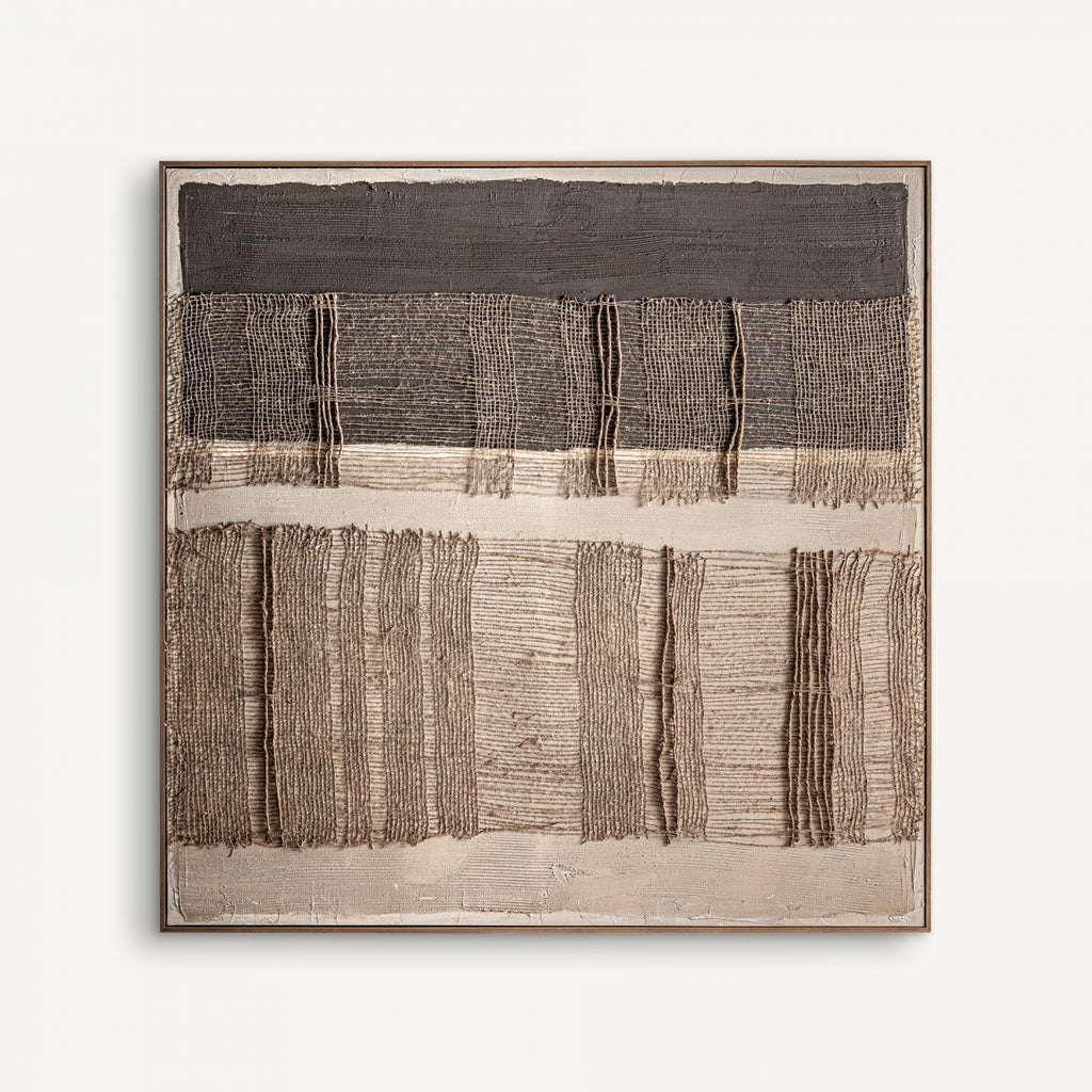 Style boho, made of canvas in brown tones with a handmade finish, combined with brown pine wood.