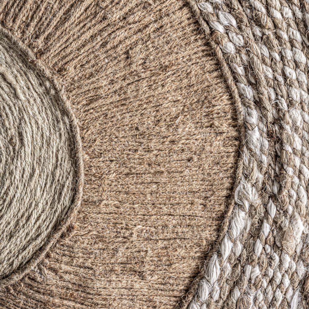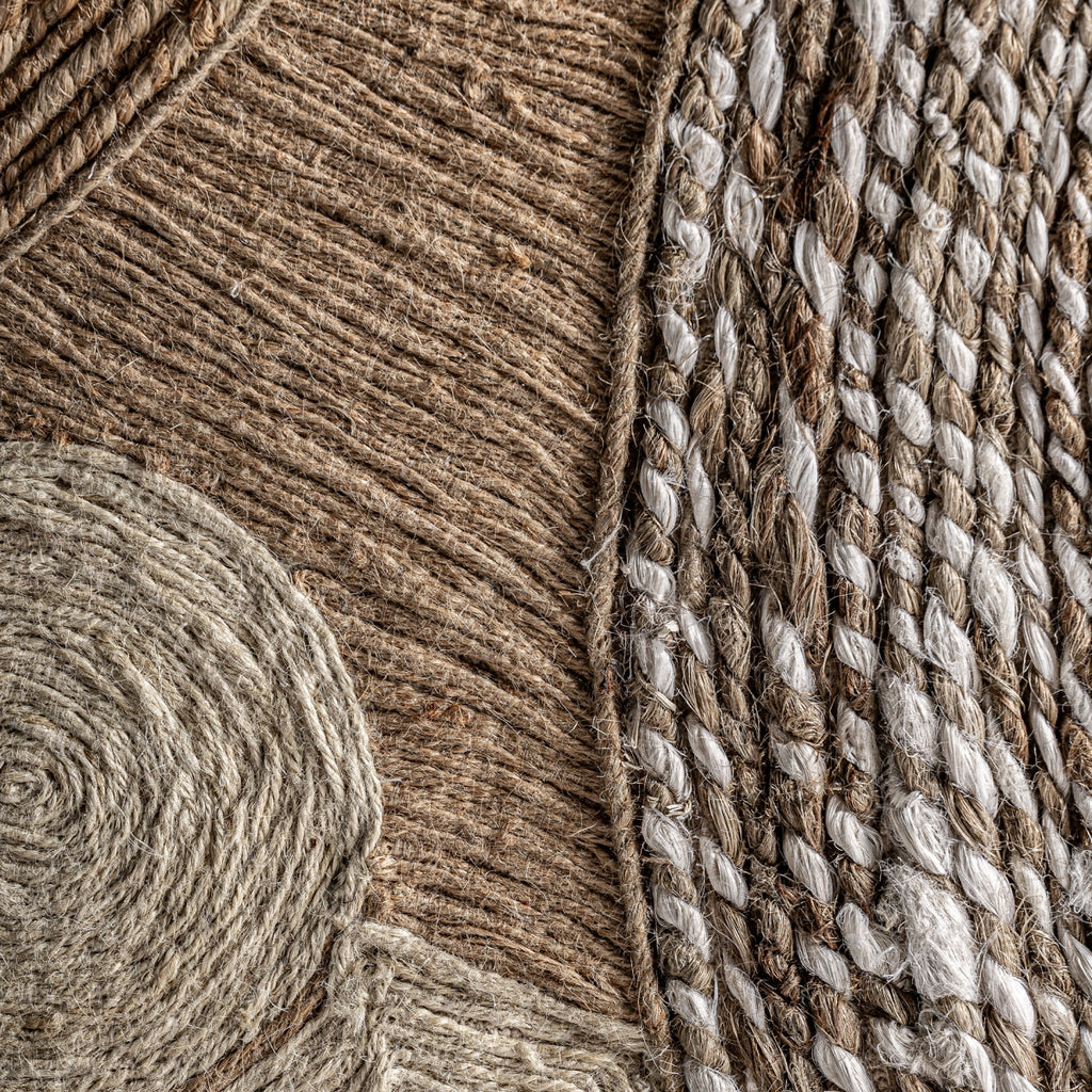 Style boho, made of mango wood in light brown, combined with beige hemp and neutral tones jute.