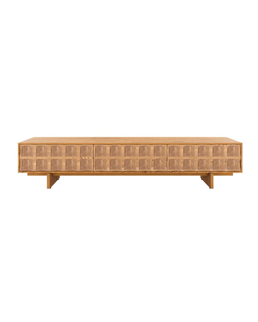 The RIJAL Nat 240 TV cabinet has 3 drawers, stands out for its natural color and its incomparable glamour. A Sungkai TV cabinet as elegant as it is striking, in a perfect blend of design and balance. One of the delicacies of the RIJAL family, which stands out for a rustic and soft style at the same time, which transports us to a state of calm and to our most natural essence, thanks to its fine lines but with weight. A high quality wood, worked by our expert craftsmen. The RIJAL Nat is the ideal tv furniture for living rooms of minimalist, classic or exotic style, perfectly combinable with the full range of whites, creams, grays and all kinds of details in more striking colors.