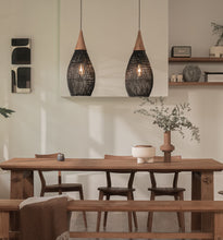 The Horn is a beautiful light for smaller rooms but can also be very well mixed with any one of the lampshades in the series into a decorative cluster of pendants over the dining table. The organically shaped rattan weave is carefully done by hand, using traditional Javanese technique. Available in various sizes and in natural or charcoal finish.