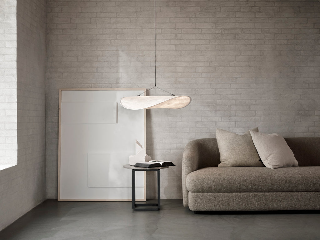 A new little cloud has floated in. The popular Tense Pendant Lamp is now available with a diameter of 70 cm in addition to the sizes Ø90 and Ø120 cm. Ideal for smaller spaces or mounted in poetic formations along with the other sizes. Like the other Tense pendants, the lamp consists of a light shade made of the material Tyvek, which is both durable and soft – whilst being 100% recyclable. The flexibility of this paper-like diffuser allows its slim frame to accentuate the cloud like qualities of the lamp. Finished with a slimline LED light source, all components fit into a slim box for ease of transport.