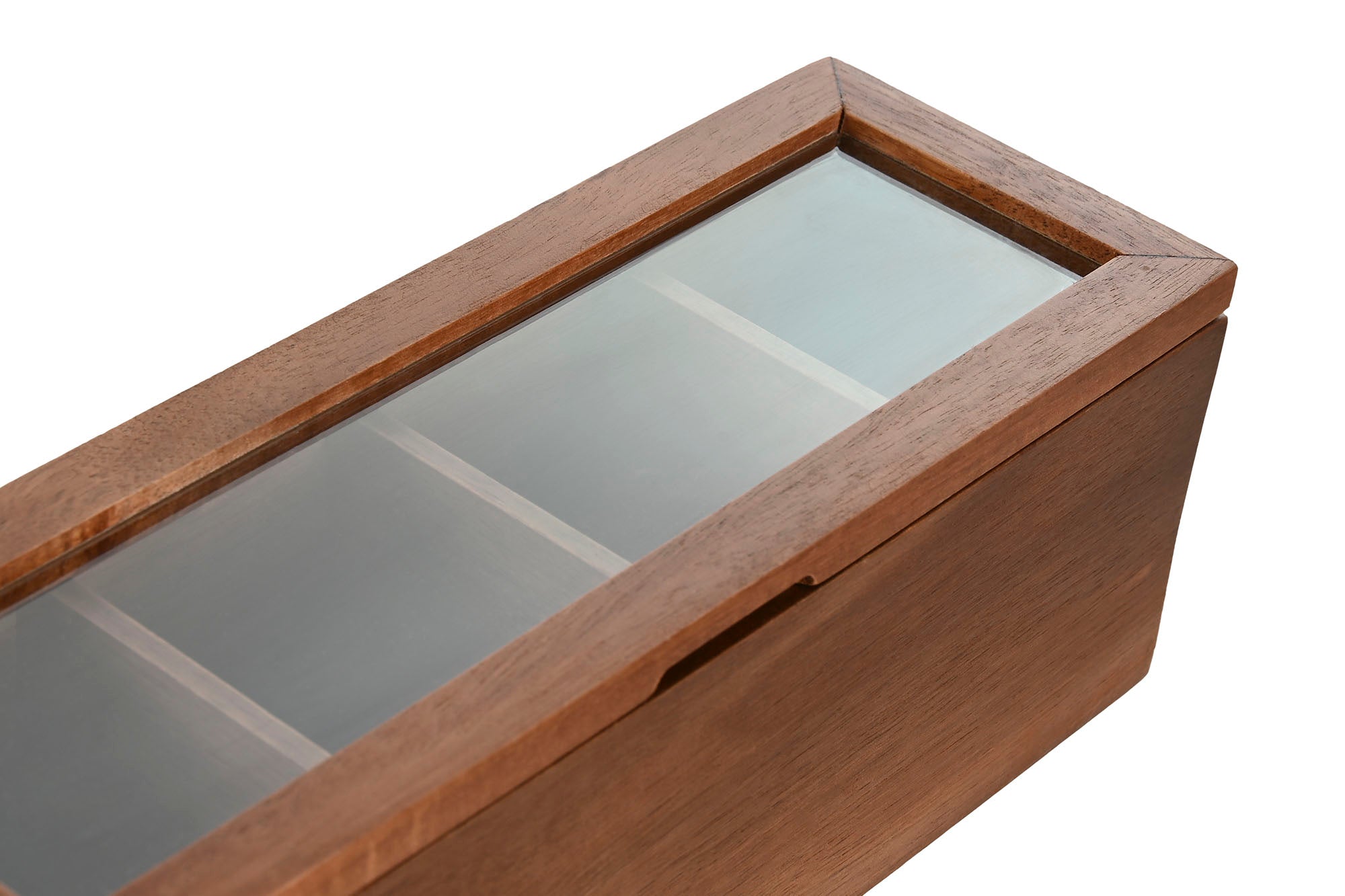 TEA BOX ACACIA GLASS 26,5X9X9 4COMP, NATURAL